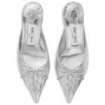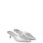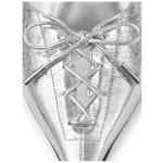 silver leather pointed toe lace-up detail sculpted heel metallic finish Scarlett 50 leather mules