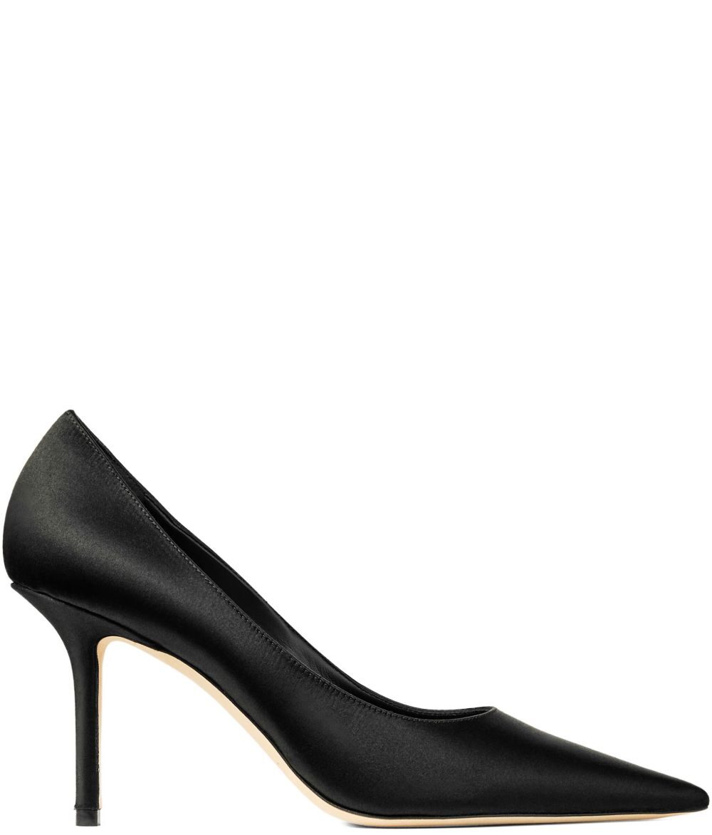 black pointed toe 85mm heel textile upper leather sole Lvoe leather pumps