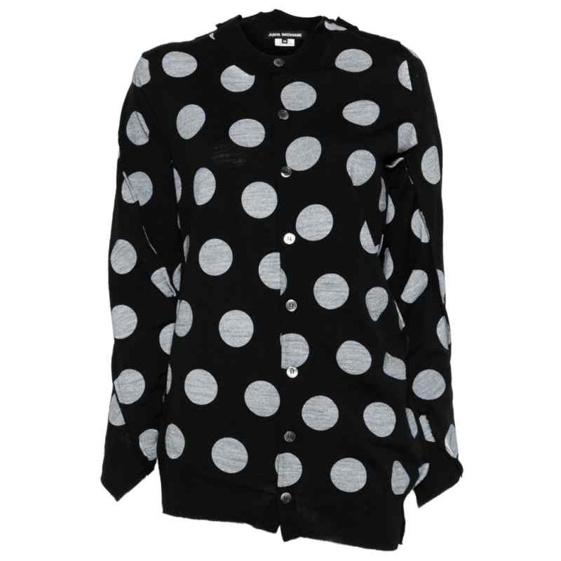 black polka dot pattern button fastening long sleeves Dotted wool sweater.