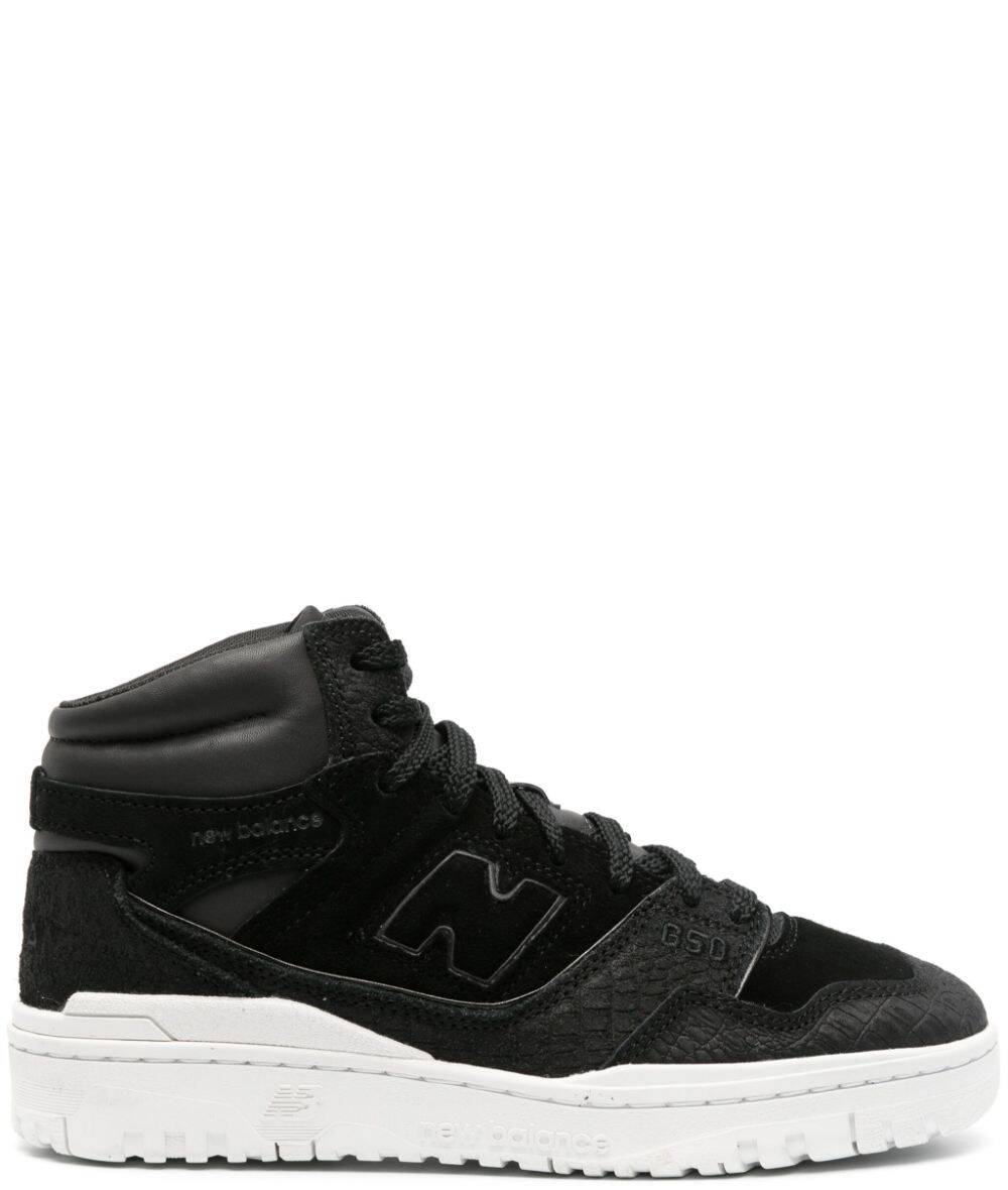Sneakers X New Balance BB650 with Junya Watanabe panels characterized by black veal skin, clumsy coccorrillo effect, suede leather panels, patch with logo on the side, patch with logo on the tongue, logo embroidered on the side, heel with brand, Rotonda tip, laces on the front. UP closure, logoed slab and striped rubber sole. BB650 sneakers