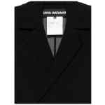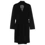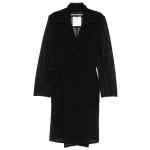 black wrap design side tie fastening mesh panels notched lapels Midi coat.
