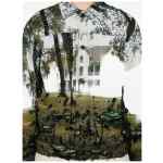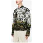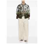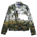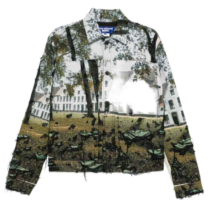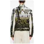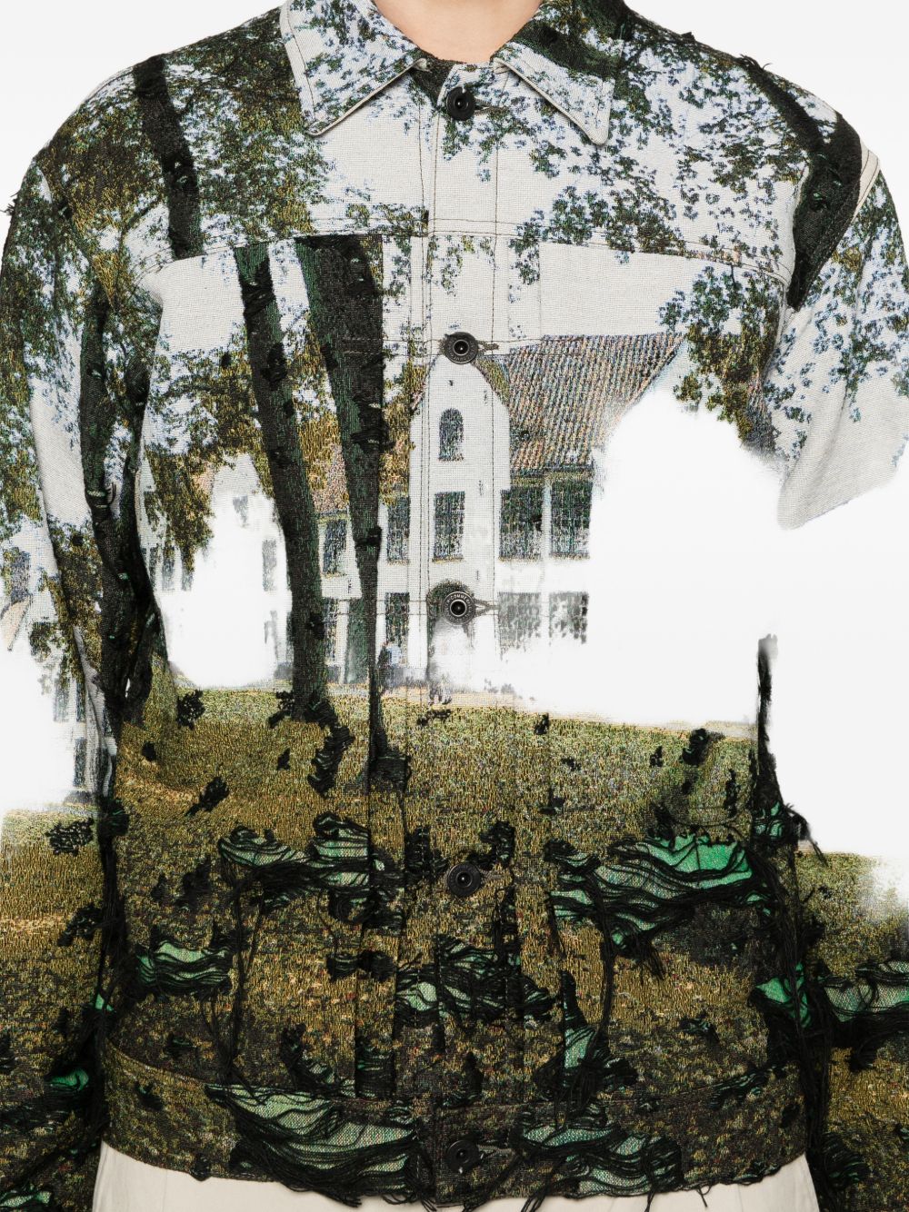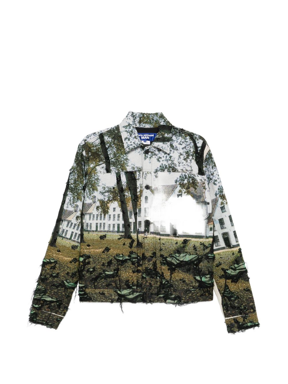 green and multicolour print frayed detailing button fastening classic collar front pocket Printed jacket.
