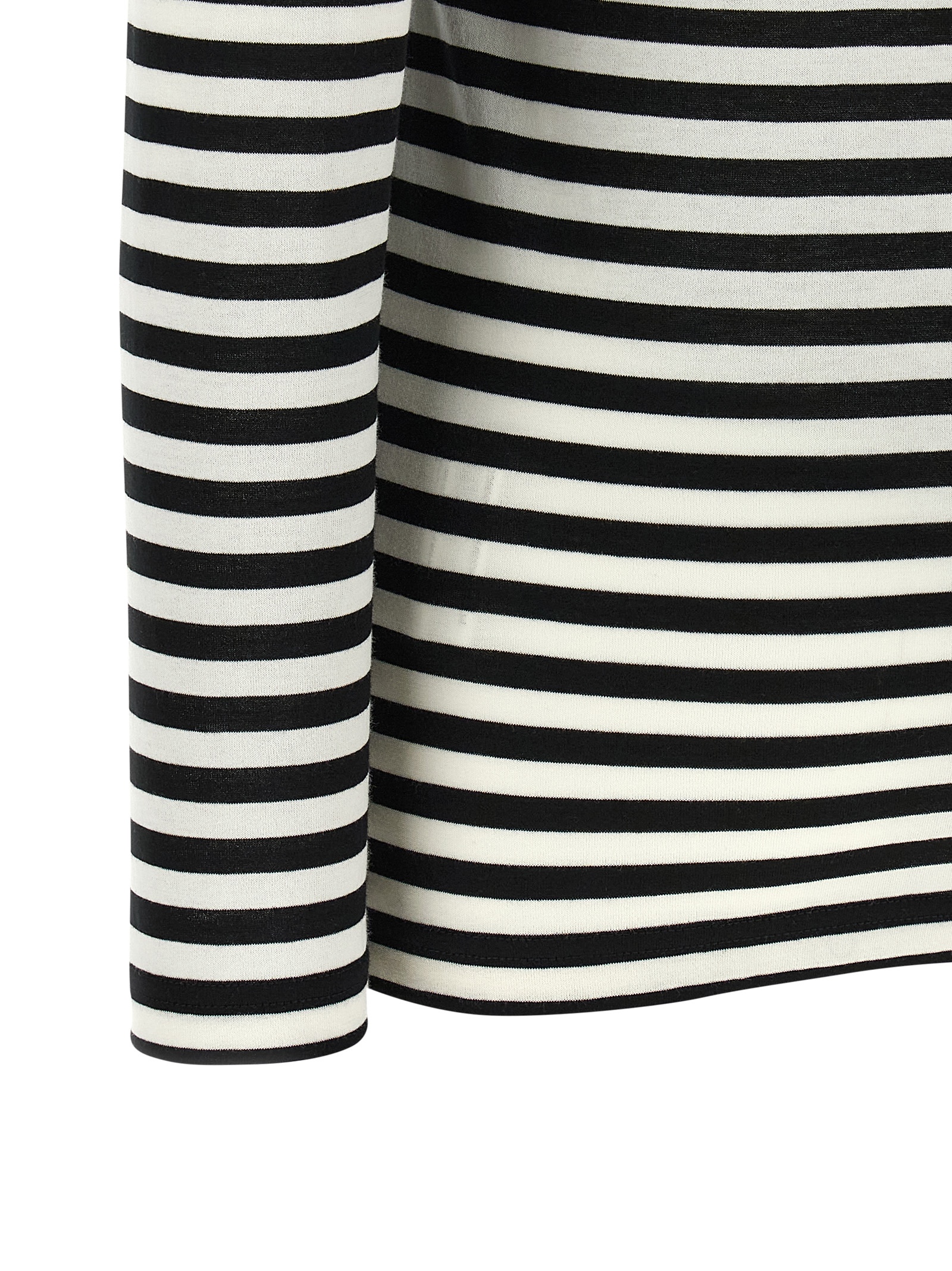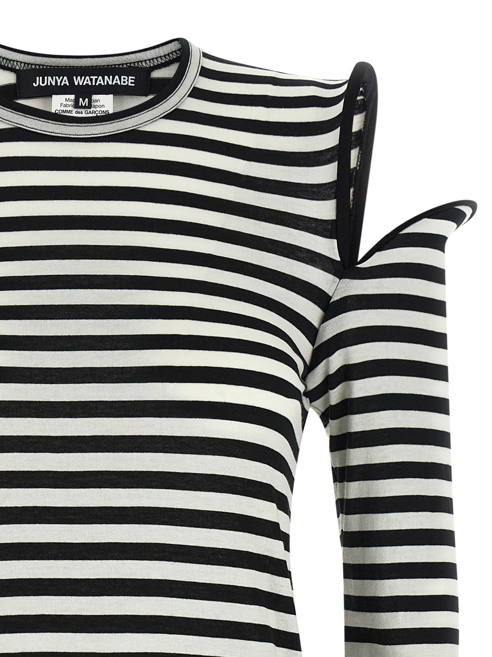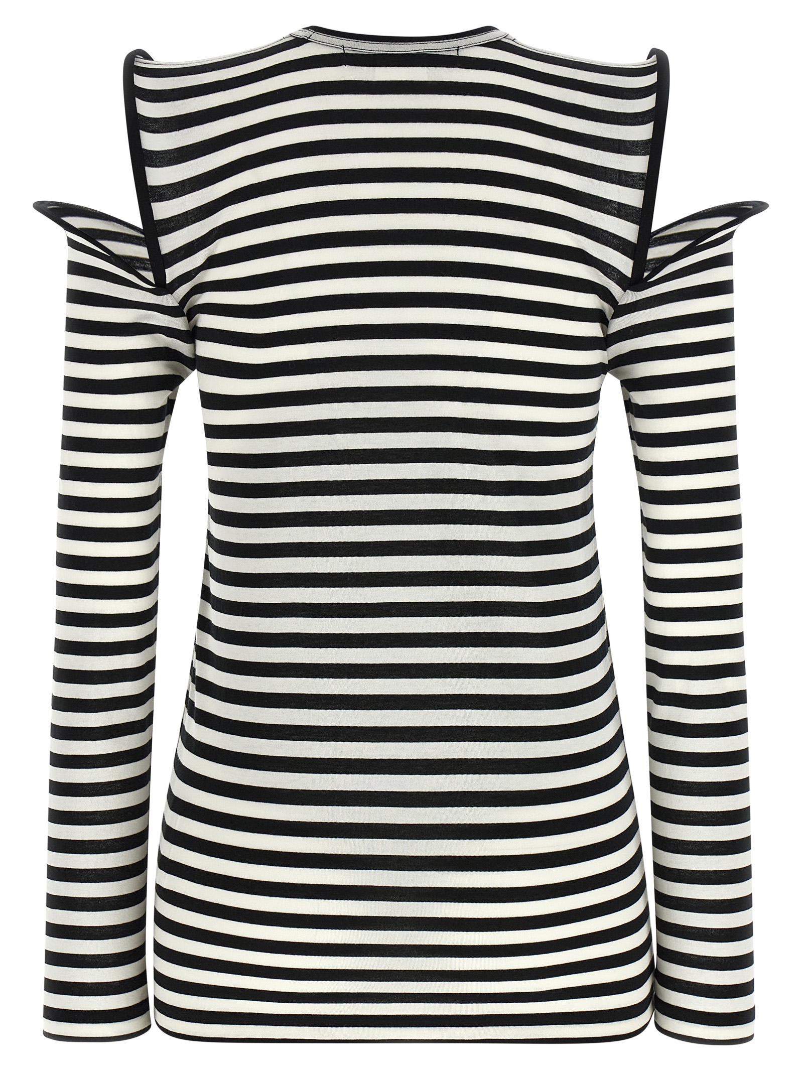 Light cotton t-shirt with horizontal stripes, Crew neck, Sculptural shoulder straps with wire and cut-out detail, Long sleeves. Size and Fit – true to size fit