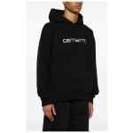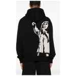 black front pouch pocket drop shoulder long sleeves Printed cotton hoodie