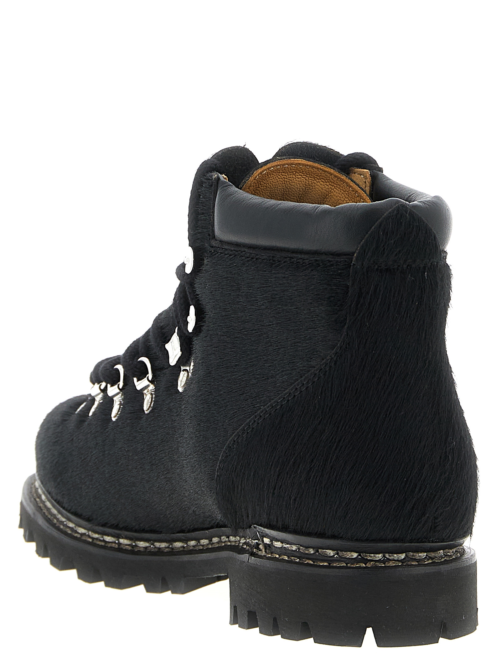 ‘Junya Watanabe x Paraboot’ pony hair boots, rounded toe, metal rivet closure, non-slip rubber sole.