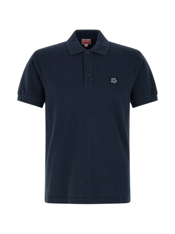 blue flower patch to the front logo embroidery to the back button fastening short cuffed sleeves Boke Flower cotton t-shirt.
