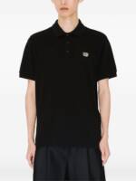 black logo appliqué short sleeves polo collar front button fastening Wild Tiger cotton polo shirt.