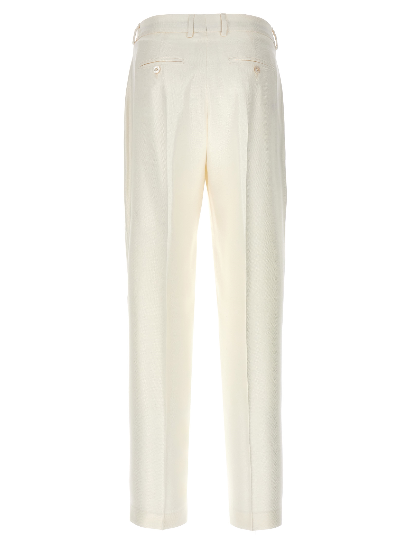 Cigarette-style viscose pants, zip and button closure, pockets.