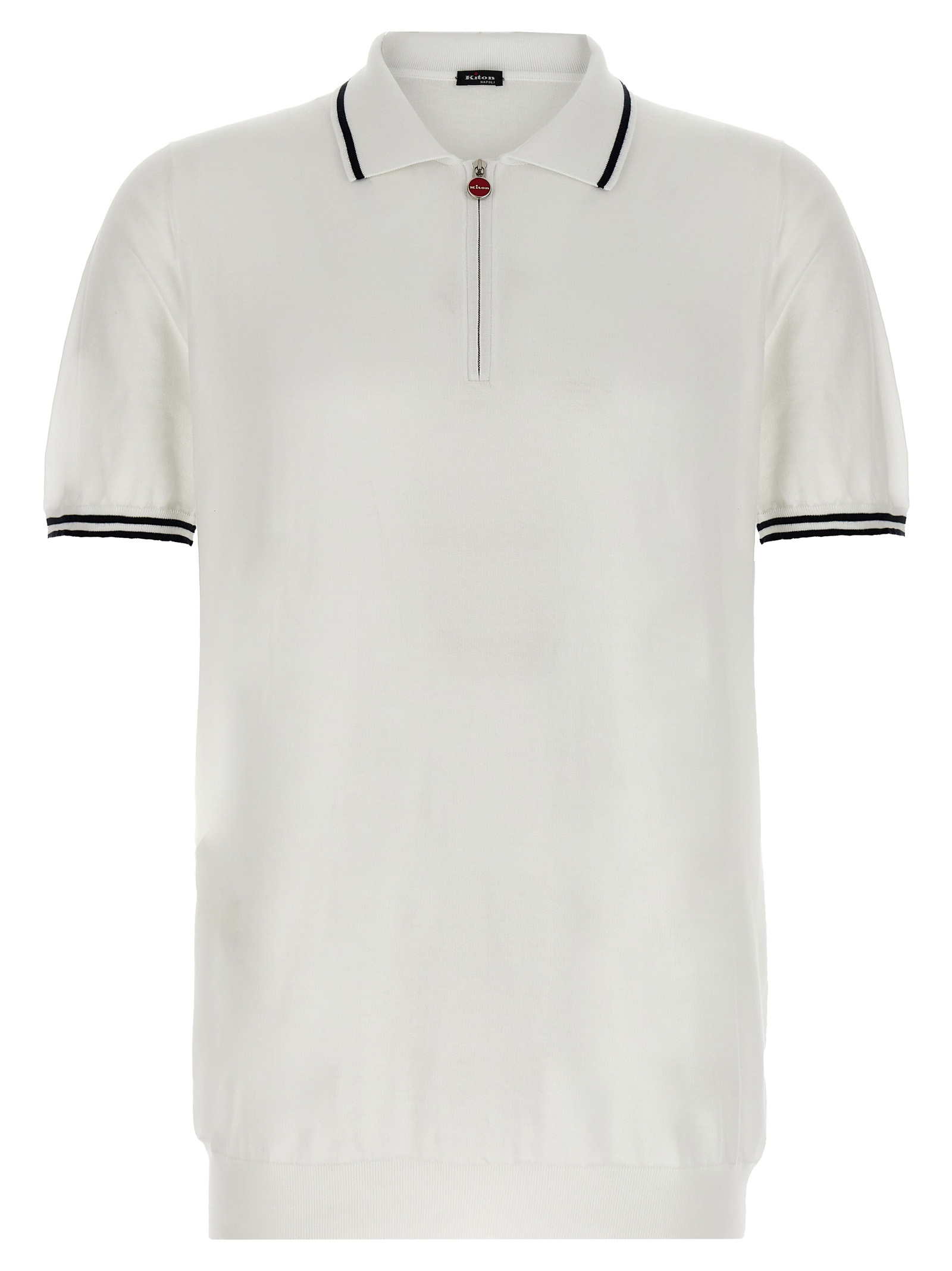 ‘Ciro’ cotton polo shirt with contrast details, half zip with logo puller and collar, short sleeves.