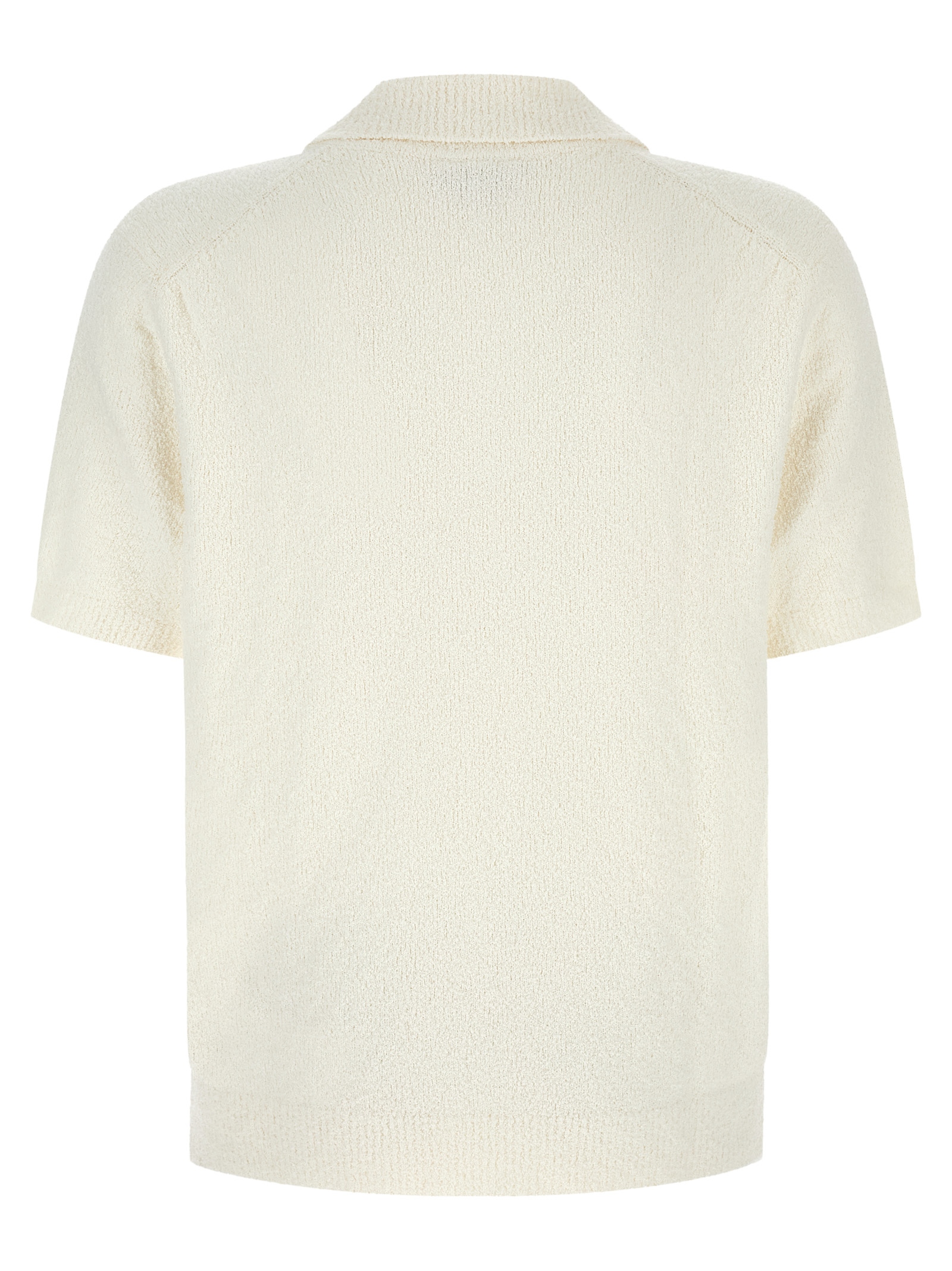 Textured 7 fineness knit cotton jersey polo shirt with medium heaviness, Open collar, Front logo patch, Short sleeves with dropped shoulders. Size and Fit – Classic fit