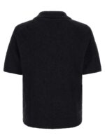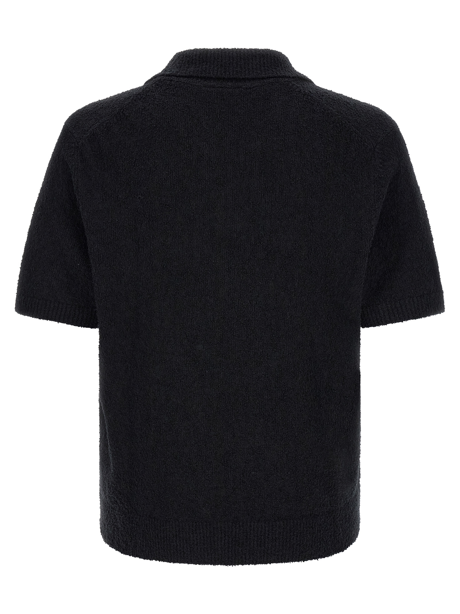 Textured 7 fineness knit cotton jersey polo shirt with medium heaviness, Open collar, Front logo patch, Short sleeves with dropped shoulders. Size and Fit – Classic fit