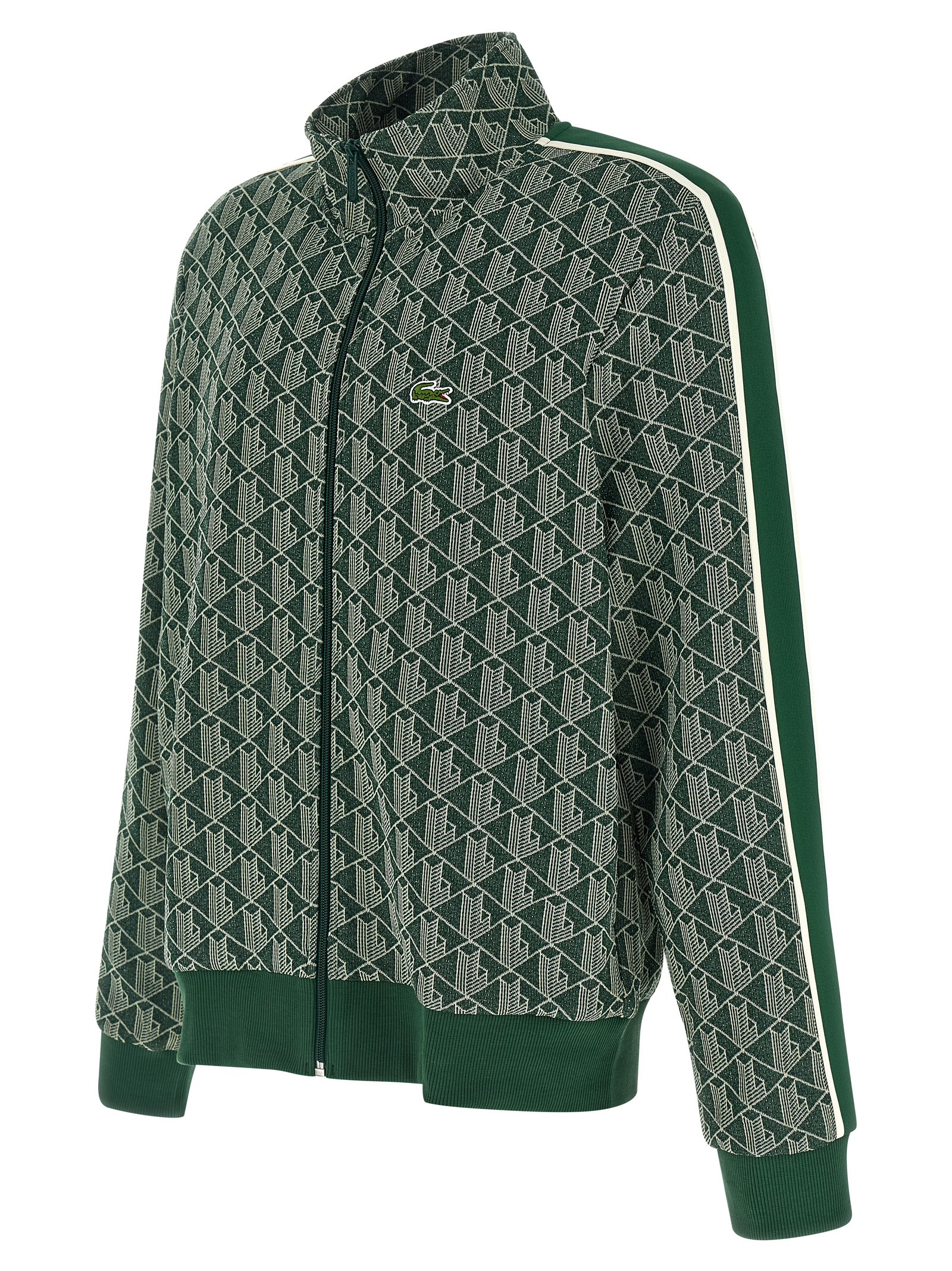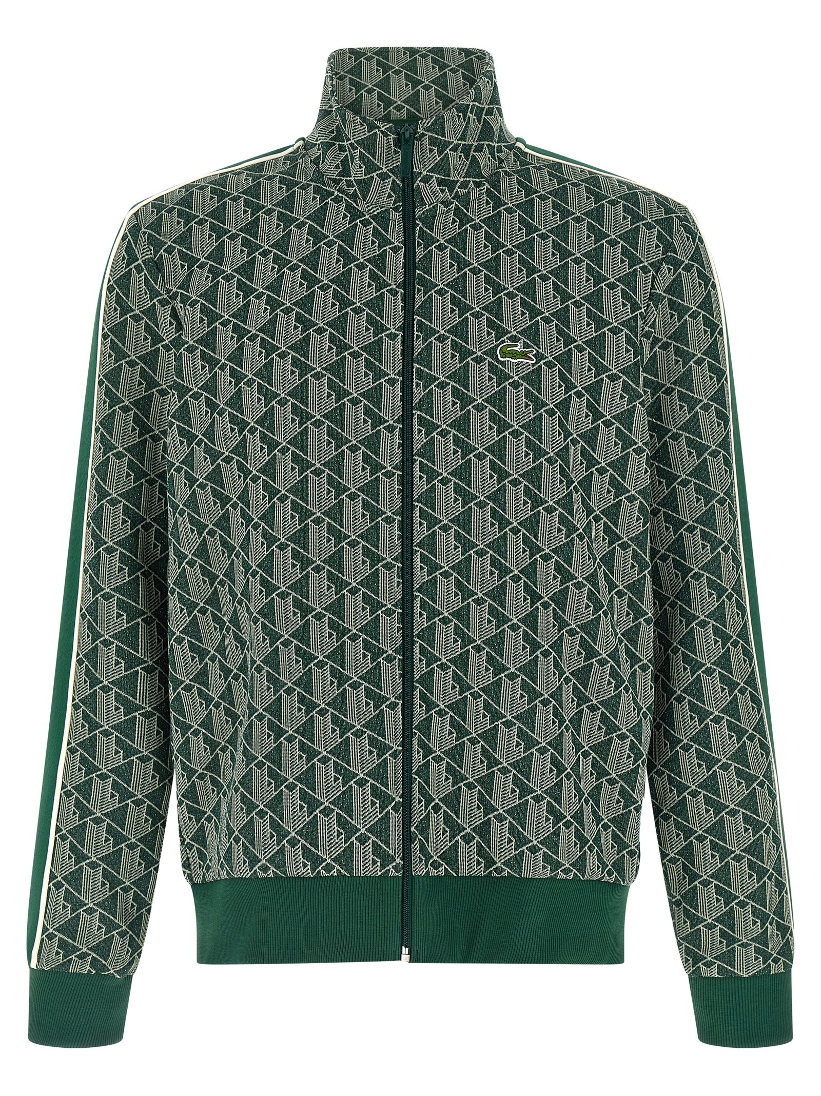 ‘paris’ vintage jacquard monogram cotton blend sweatshirt with grosgrain bands on the sleeves, High neck, Logo patch and front zip closure, Pockets, Long cuffed sleeves. Size and Fit – true to size fit