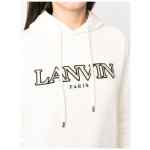 embroidered-logo cotton hoodie from Lanvin featuring cream white, cotton, embroidered logo to the front, drawstring hood, drop shoulder, long sleeves, ribbed trim and straight hem. Logo cotton hoodie