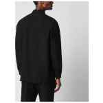 Lardini black linen-blend shirt with classic collar, concealed front button placket, long sleeves with buttoned cuffs and curved hem.