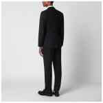 Lardini black wool-blend single-breasted suit with single-breasted jacket, long sleeves, button closure, two front flap pockets, one chest welt pocket and rear vent, trousers with front closure, belt loops, two side welt pockets and two rear welt pockets.