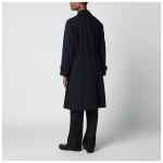 Lardini blue virgin wool single-breasted trench coat with button front closure, long sleeves with adjustable tab cuffs, adjustable waist belt, two side pockets, rear logo patch and back vent.