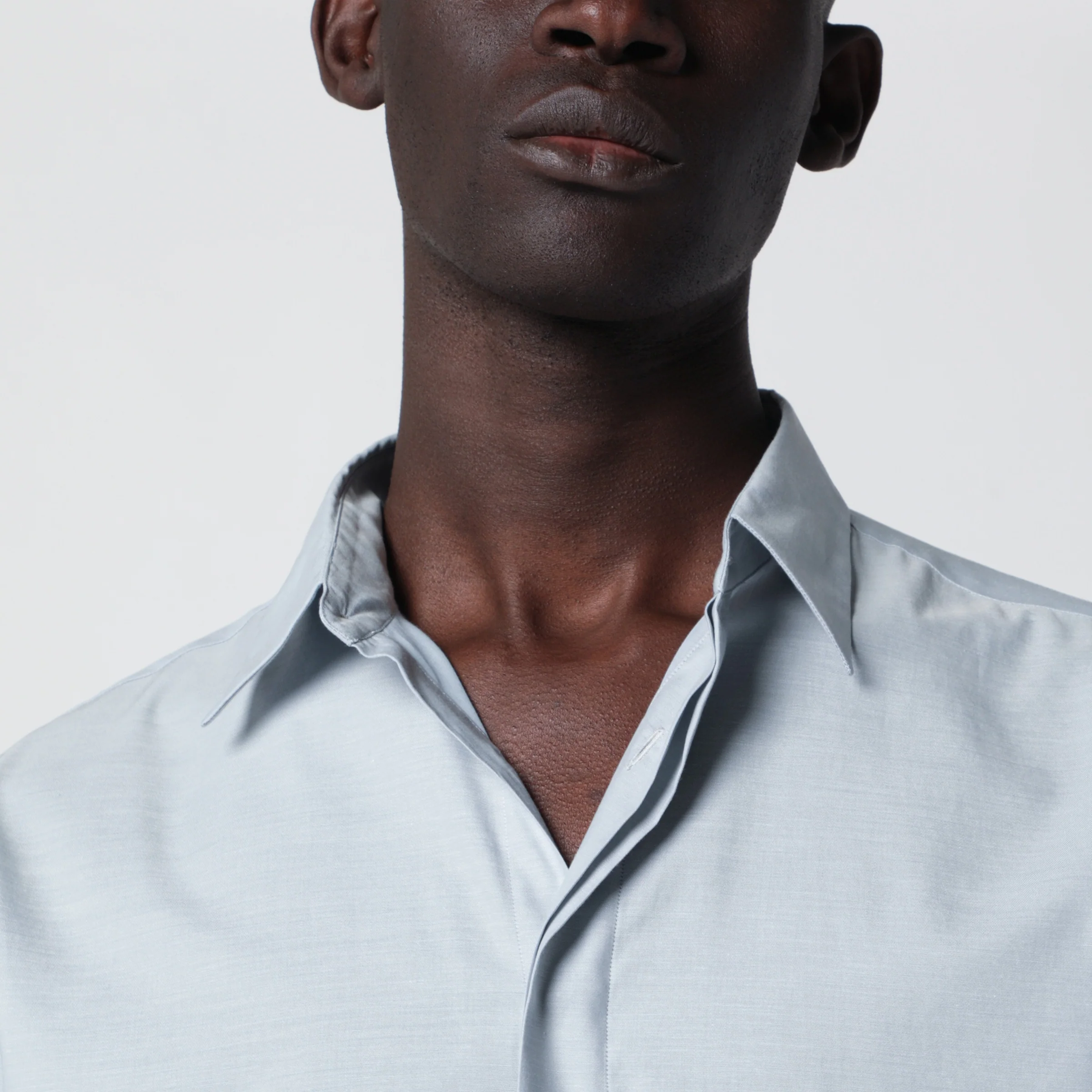 • Concealed front button closure. Size and Fit – Model wears size 41 Model measurements: Height: 185 cm Chest: 86 cm Waist: 72 cm Hips: 93 cm