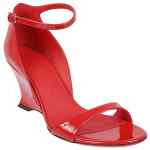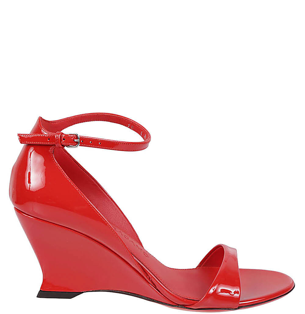 Sandal with red heel, tiny tip, closing with strap, shaped heel. Patent leather open-toe sandals