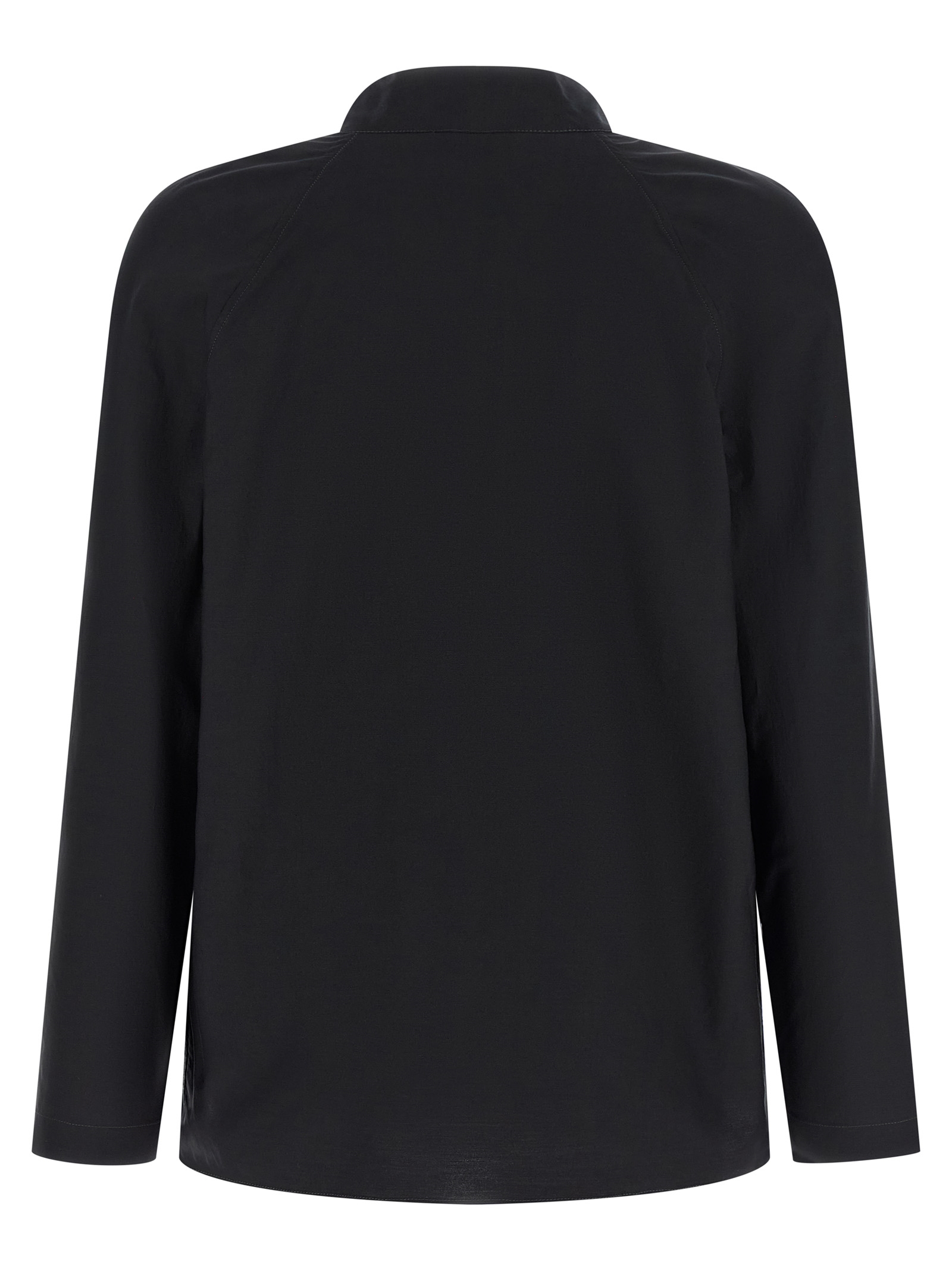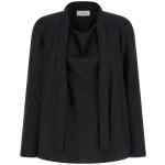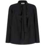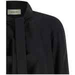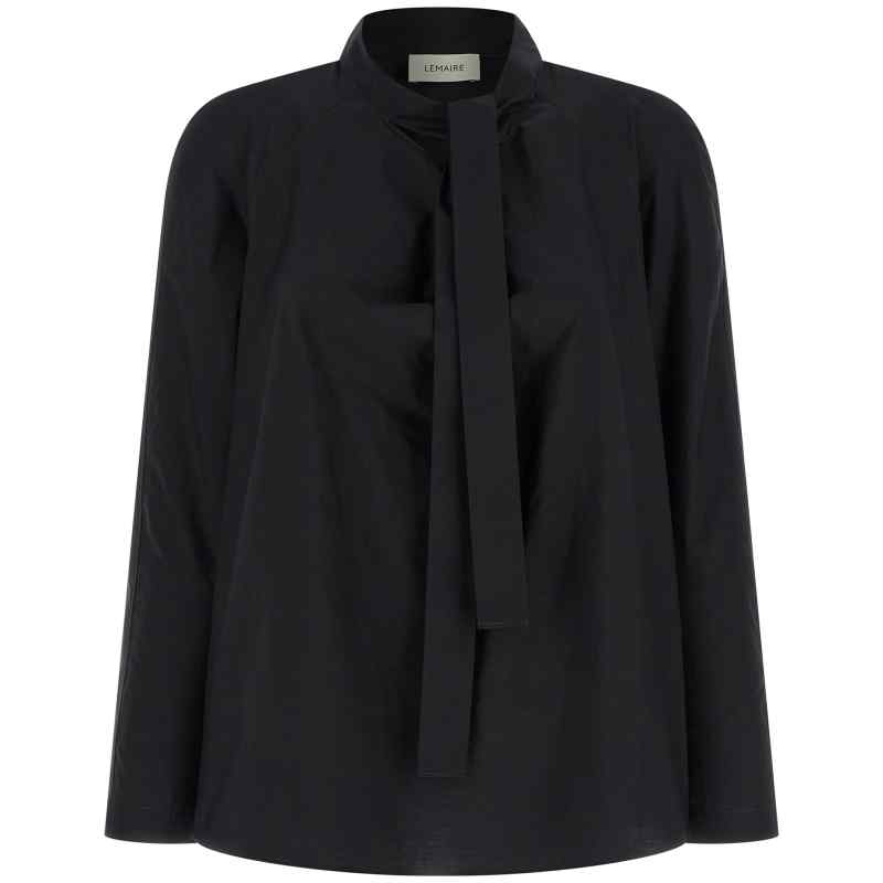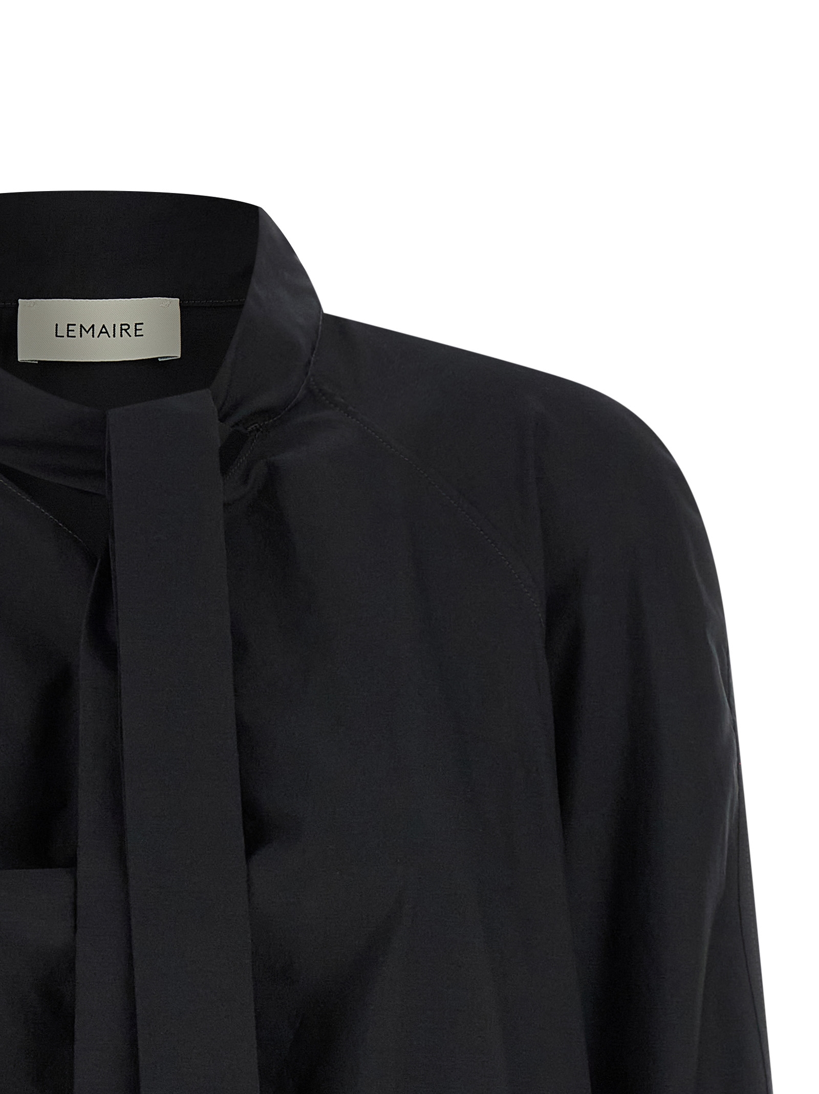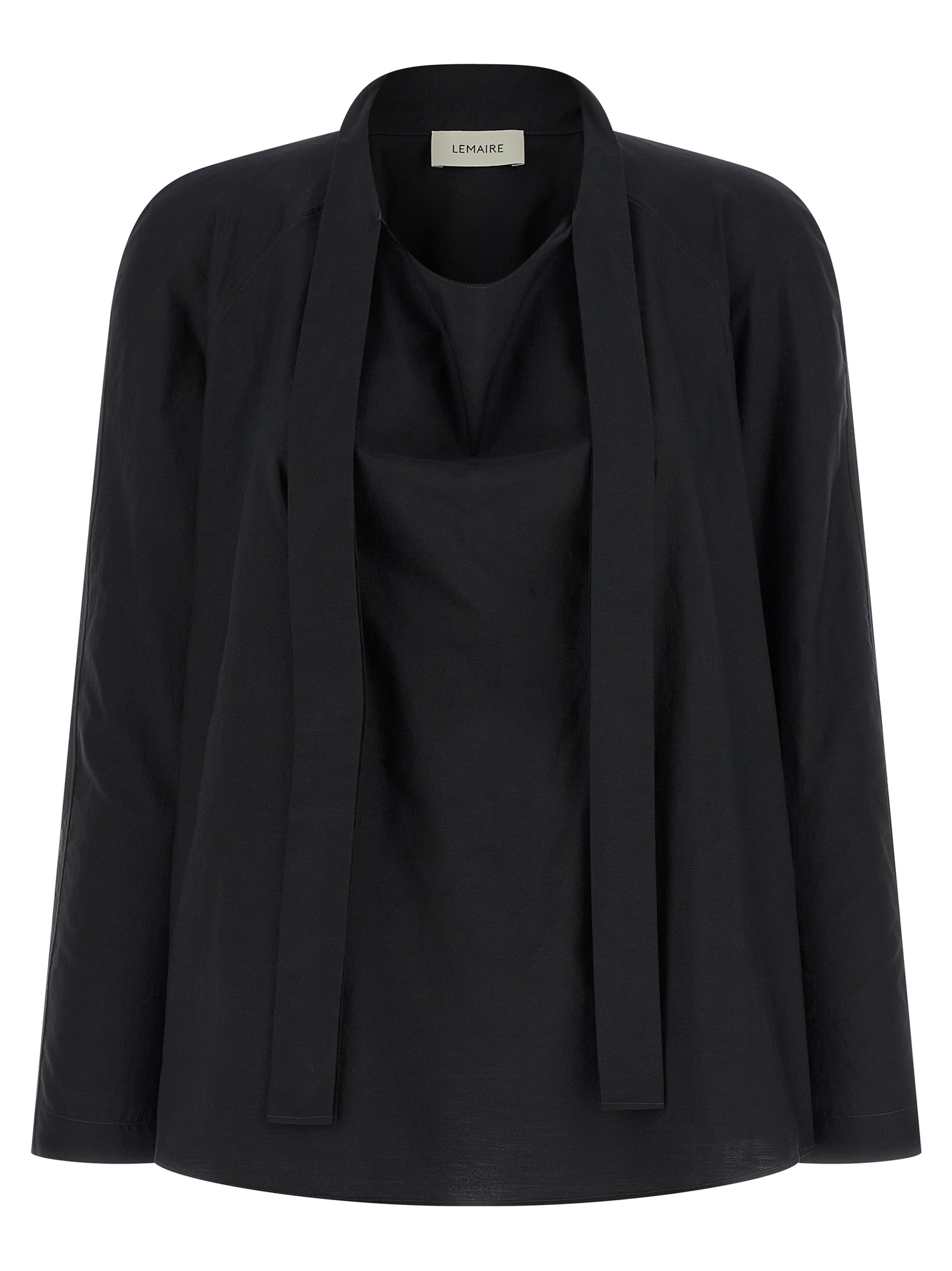 ‘ascot’ blouse in light cotton and silk blend, Round neckline with scarf knotted around the neck, Long raglan sleeves with contrast stitching. Size and Fit – Relaxed fit