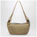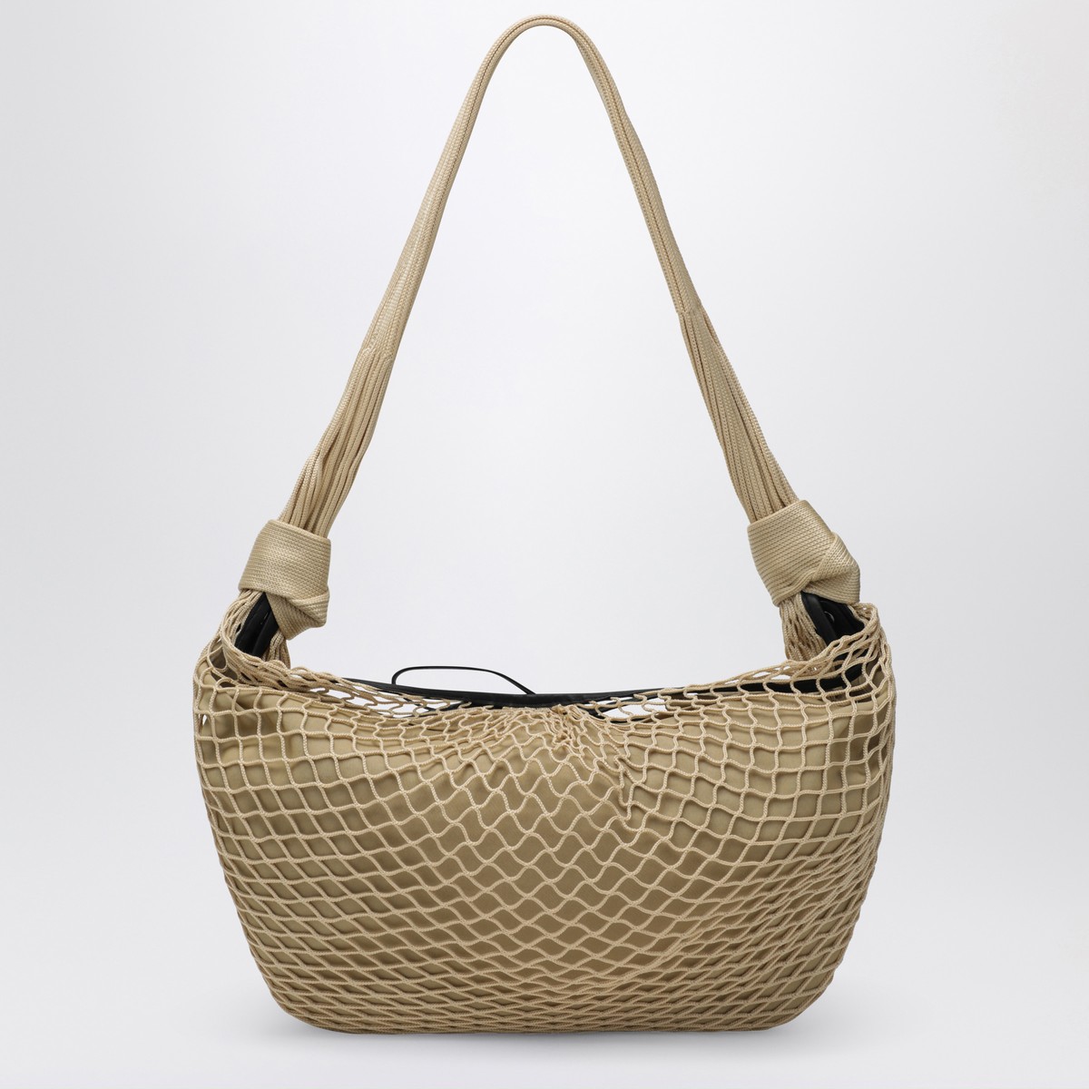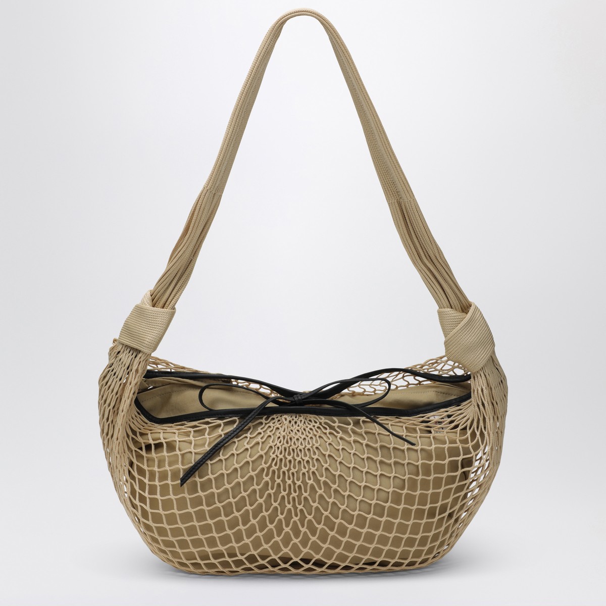Beige bag by Lemaire made in collaboration with FILT, the historic French manufacturer of mesh shopping bags, featuring lambskin leather details, a drawstring closure, a removable water-repellent nylon compartment and an inner zipped pocket.
