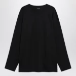 LEMAIRE Black cotton and silk interlock T-shirt