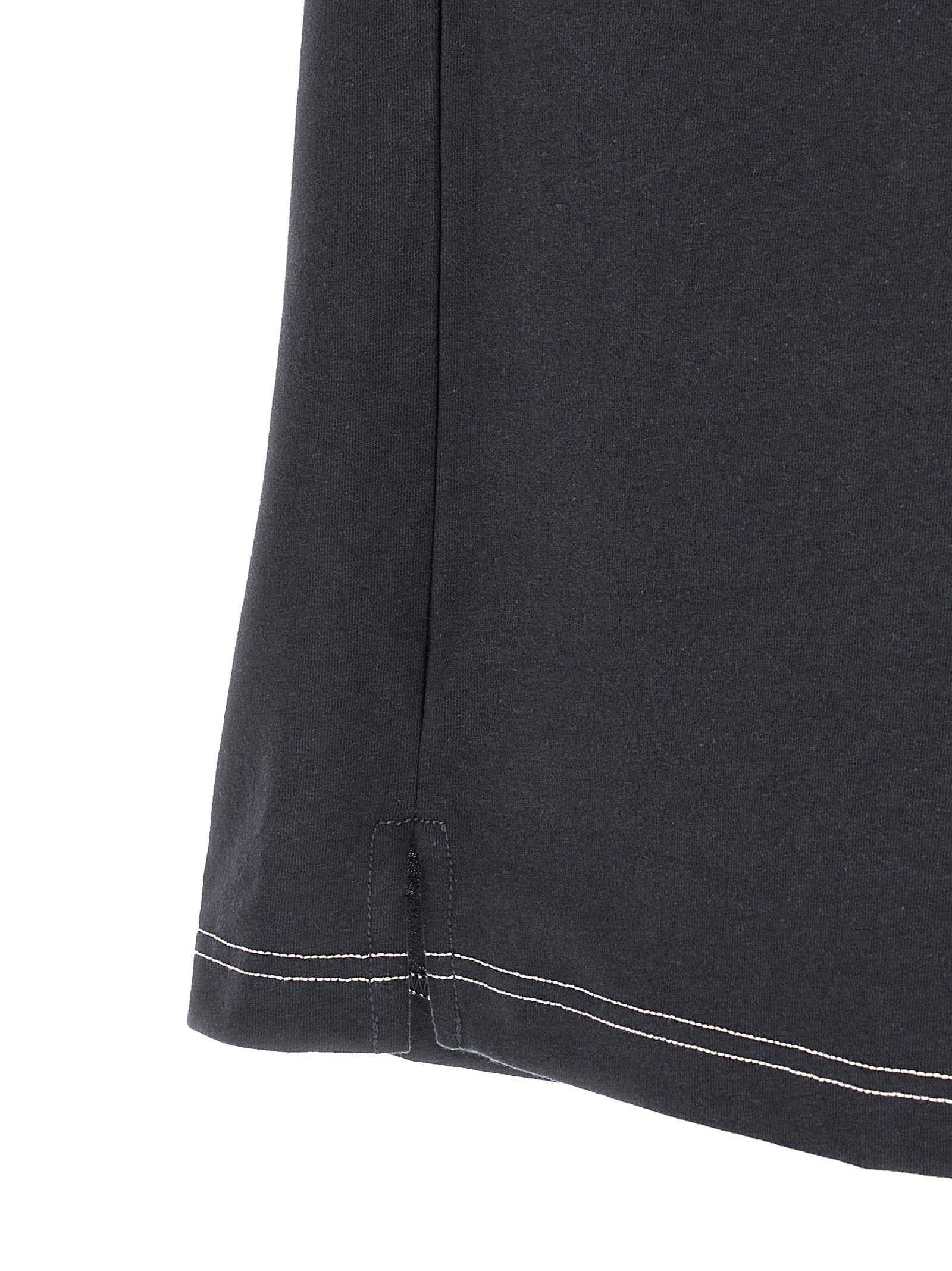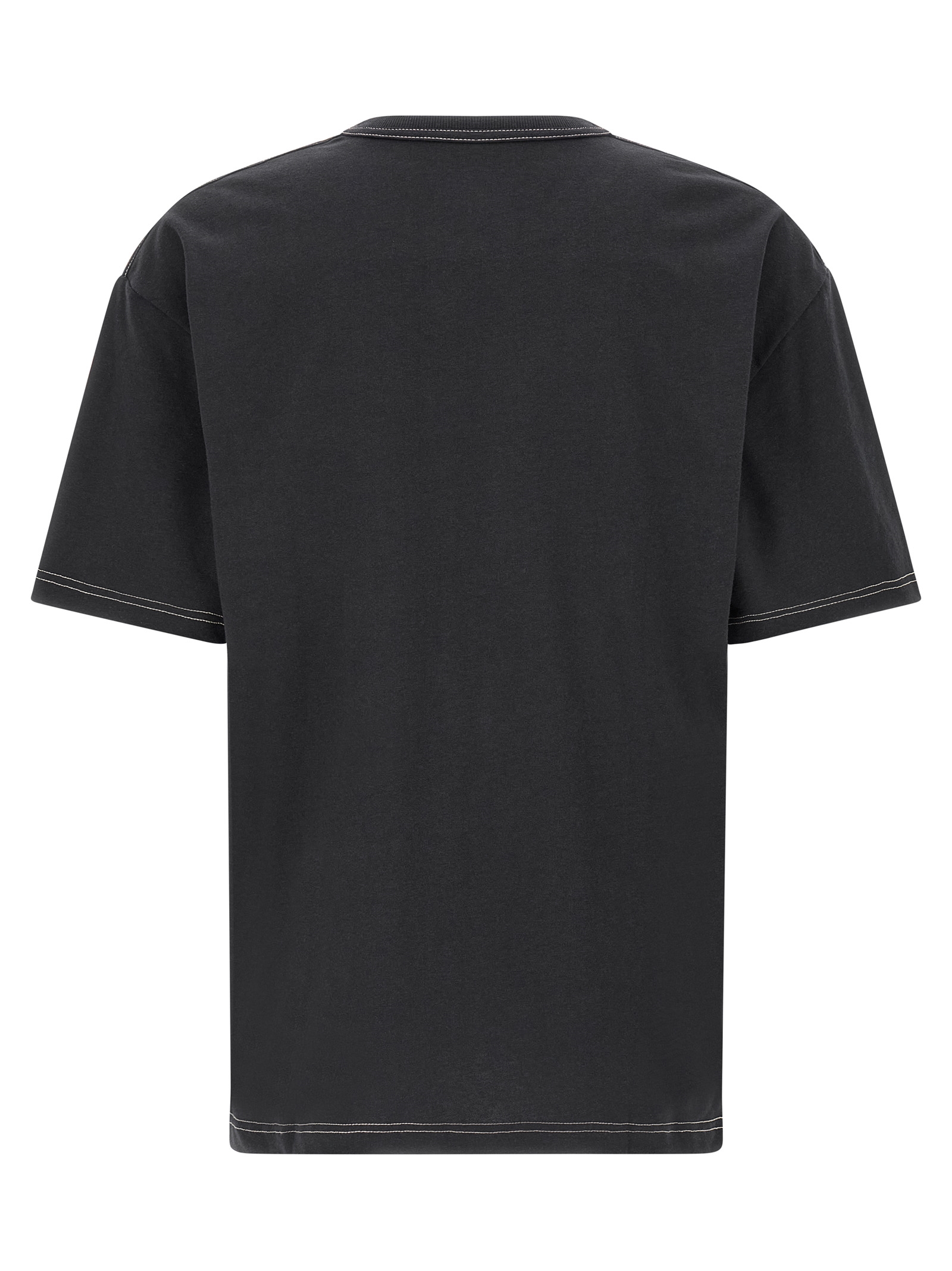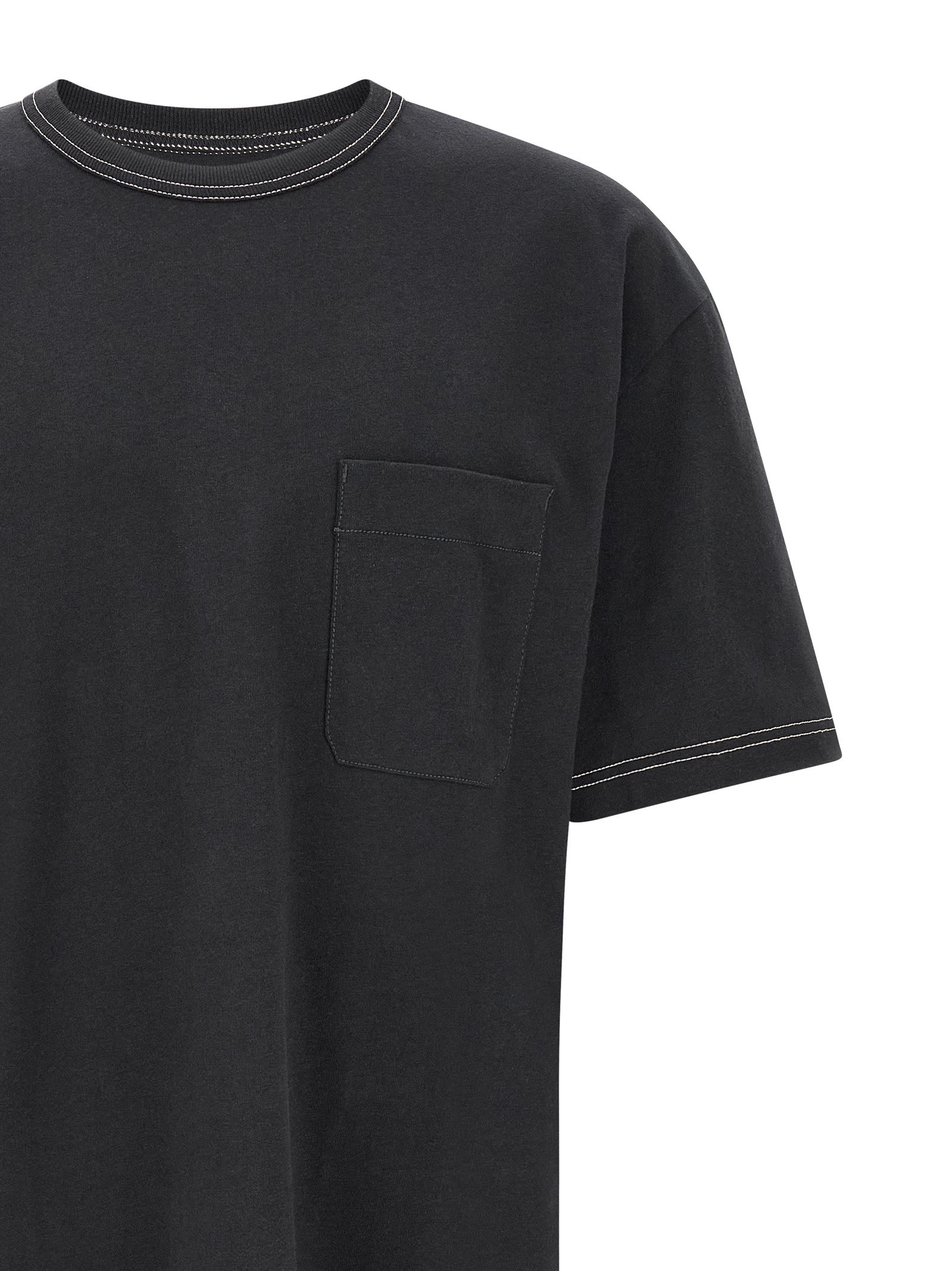 ‘Boxy’ cotton and linen blend T-shirt with contrast stitching, breast pocket, crew neck, short sleeves with dropped shoulders, side slits on the hem.