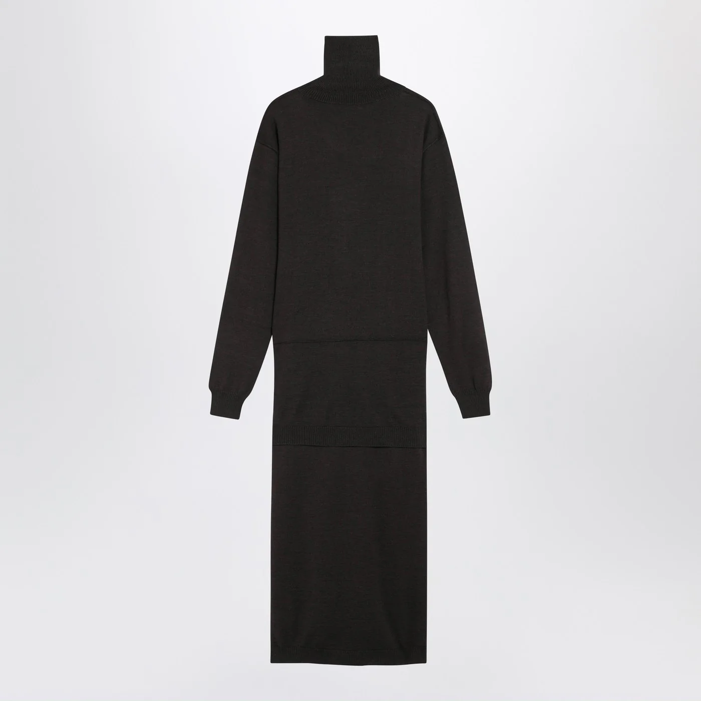 LEMAIRE Brown trompe-l'oeil wool-blend dress