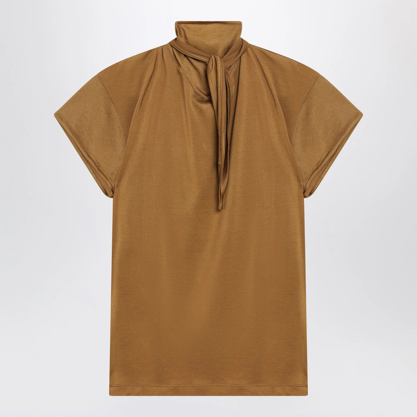 LEMAIRE Cinnamon-brown T-shirt with scarf detail