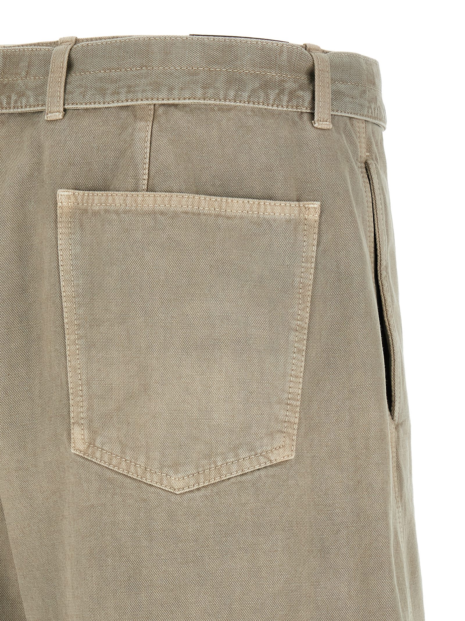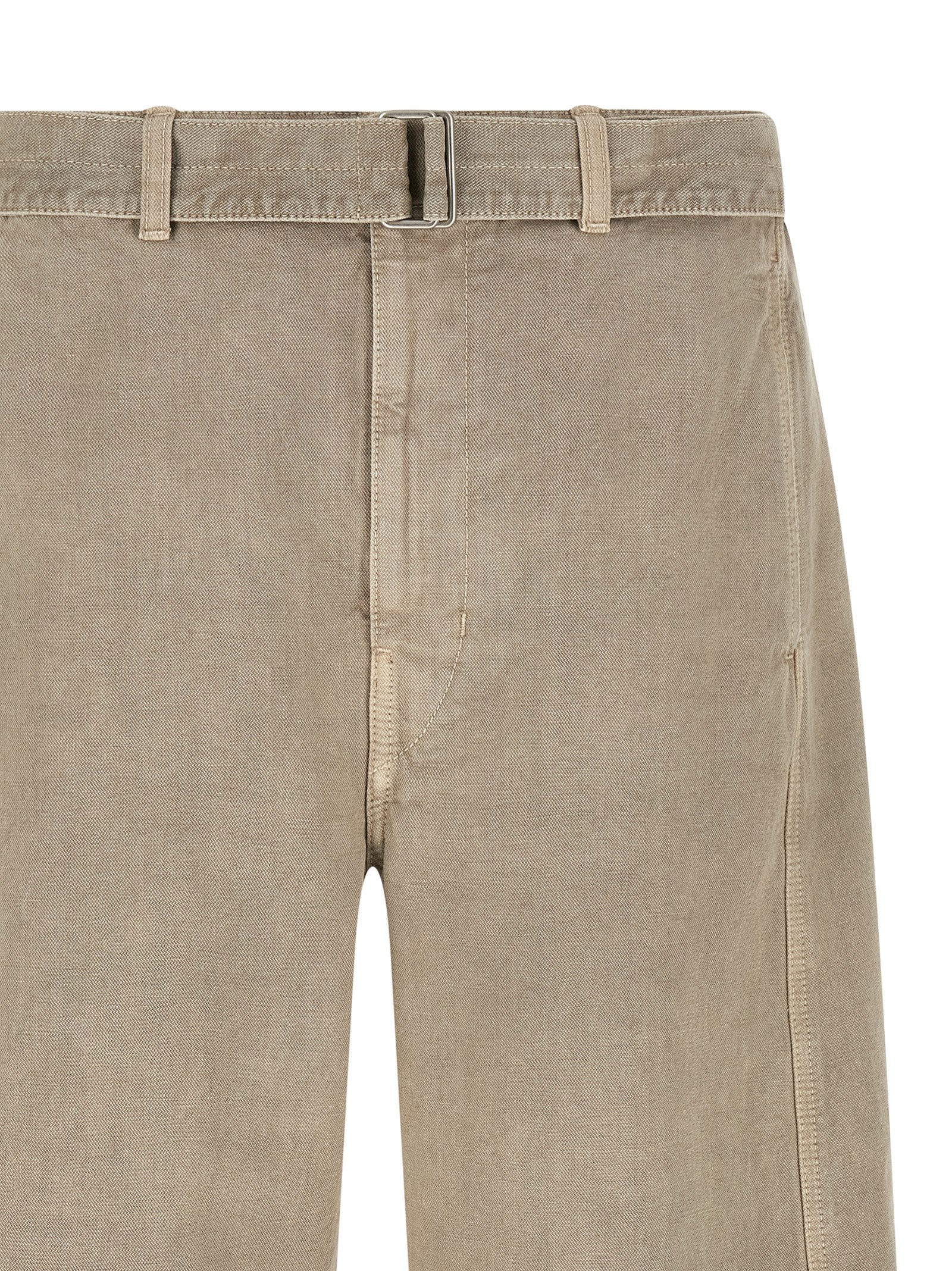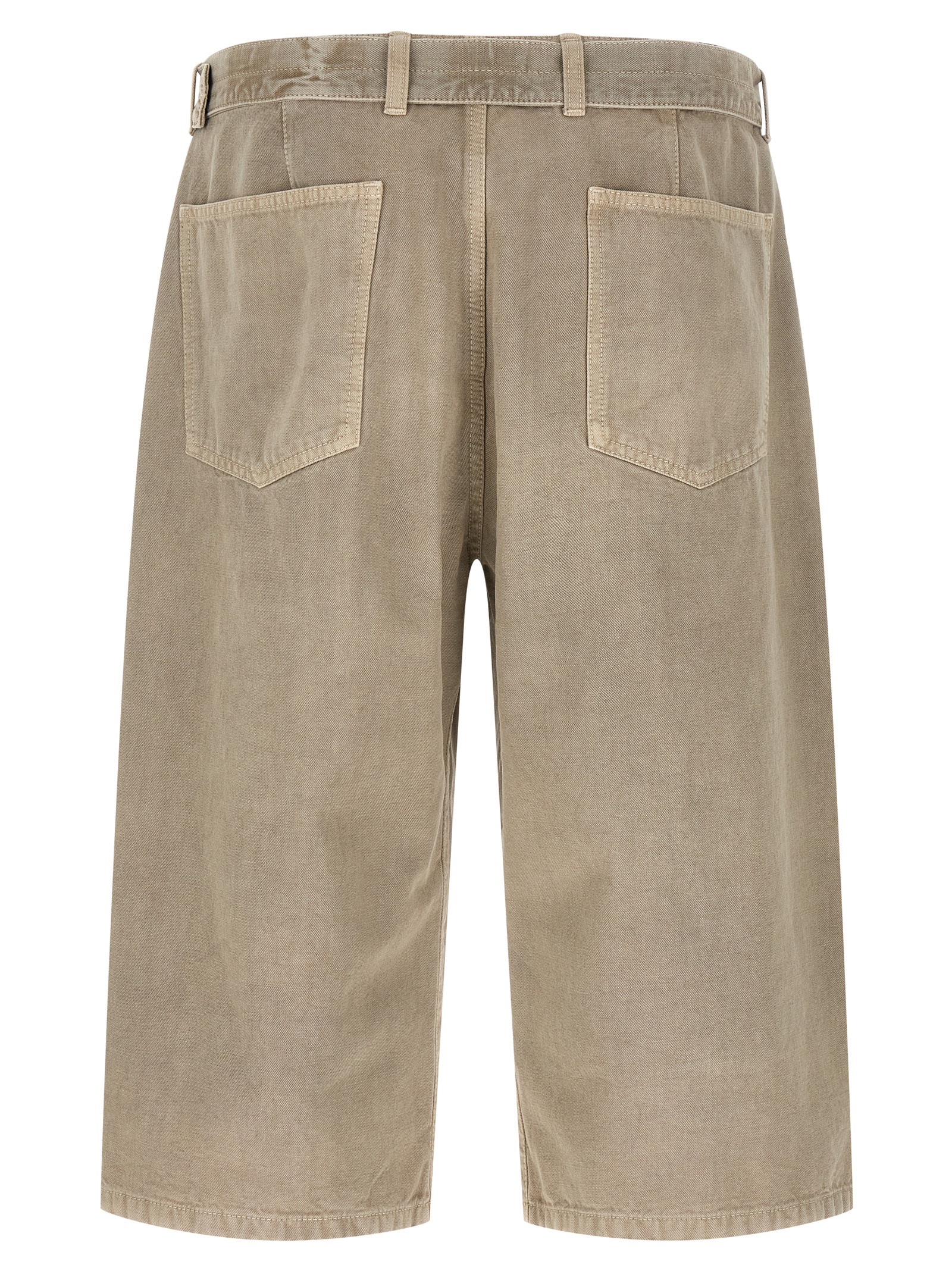 Garment-dyed cotton denim bermuda shorts with flared wide leg, Hook and button zip closure, Front french pockets, Back welt pockets, Removable matching belt. Size and Fit – True to size fit – LEMAIRE size