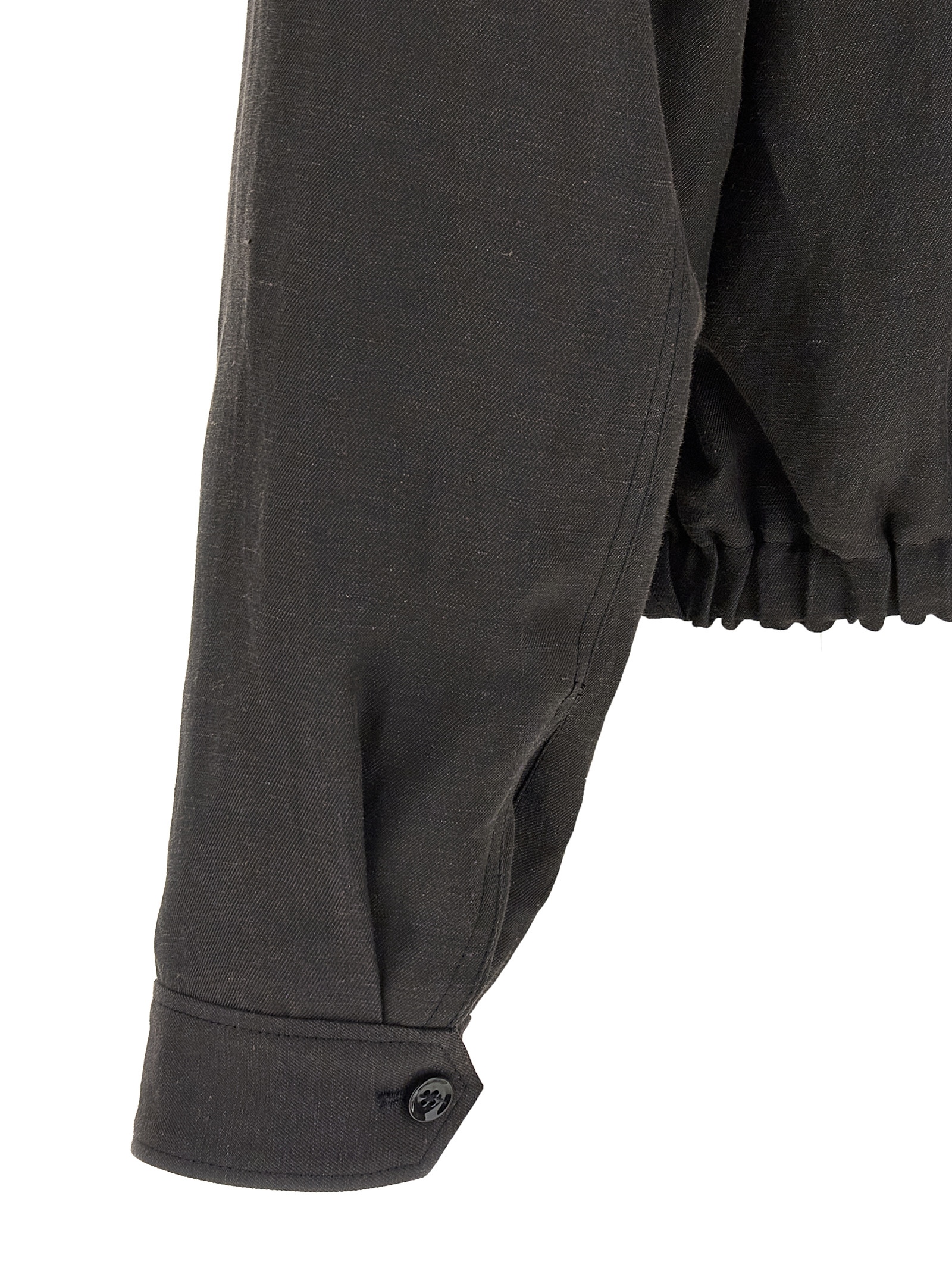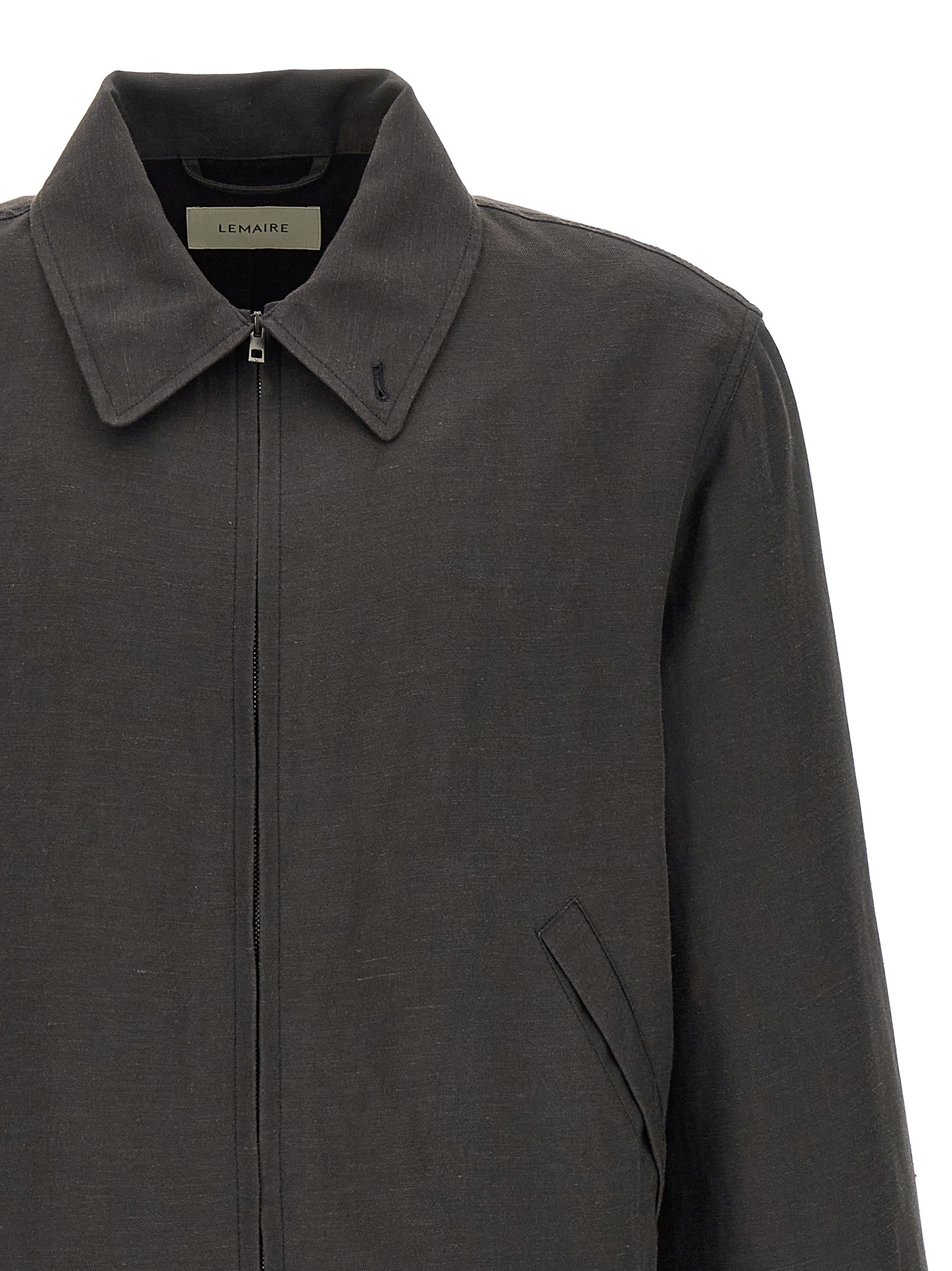 Breathable and durable linen blend jacket, Cotton lining, Shirt collar with button to turn it into a high neck, Front zip closure, Pockets, Long sleeves with cuffs and slightly dropped shoulder, Back elastic on the hem. Size and Fit – True to size fit – LEMAIRE size