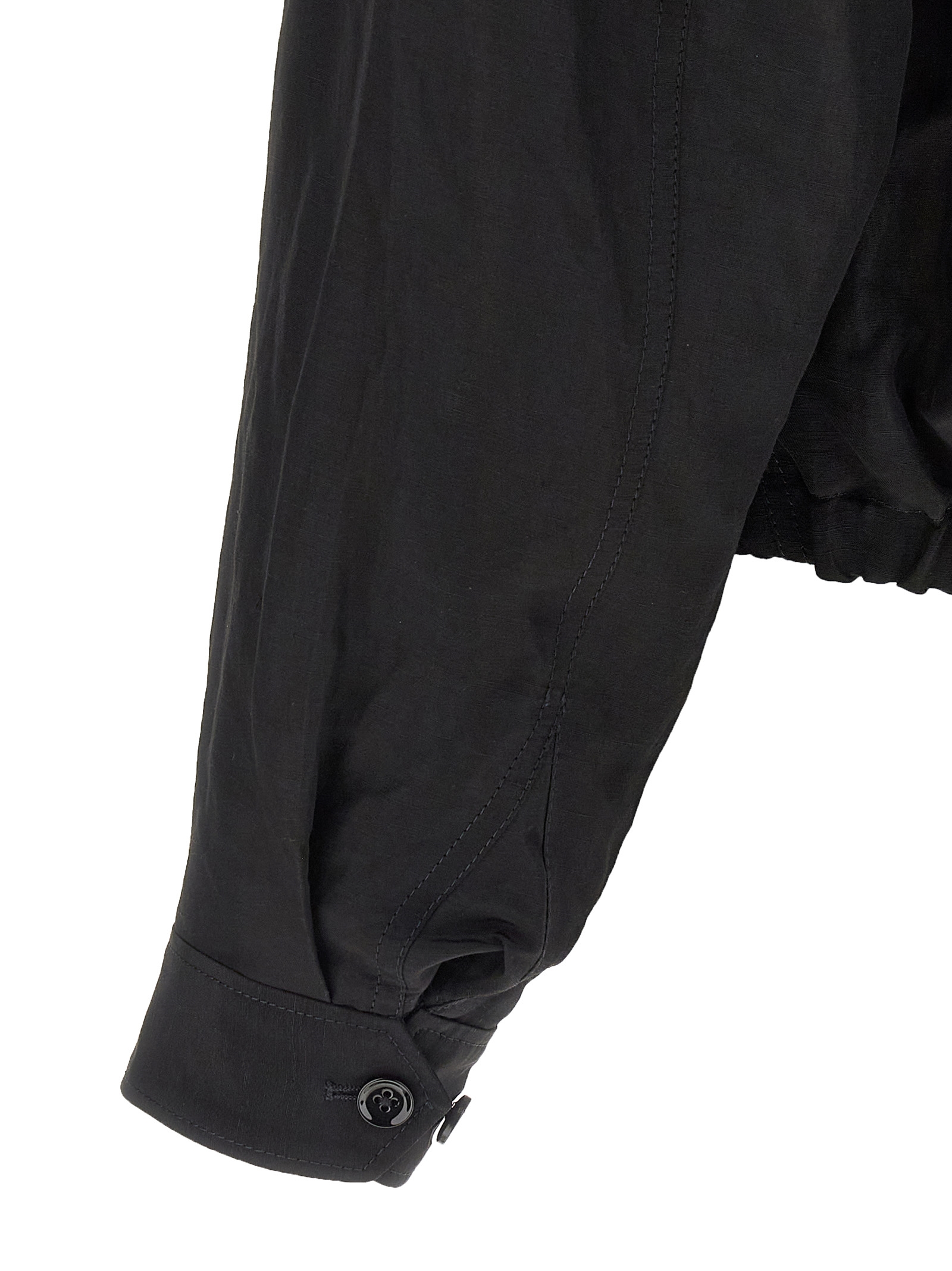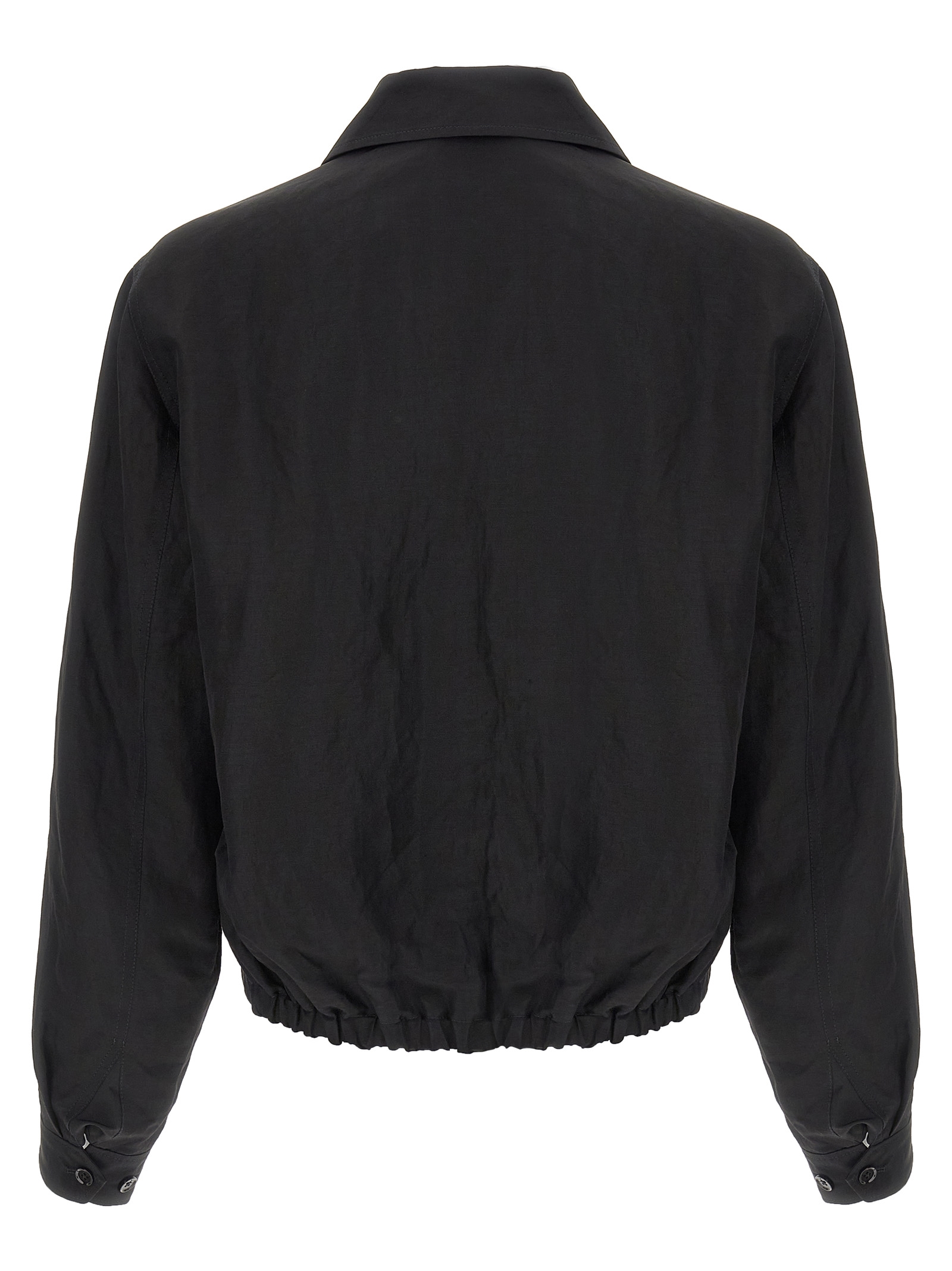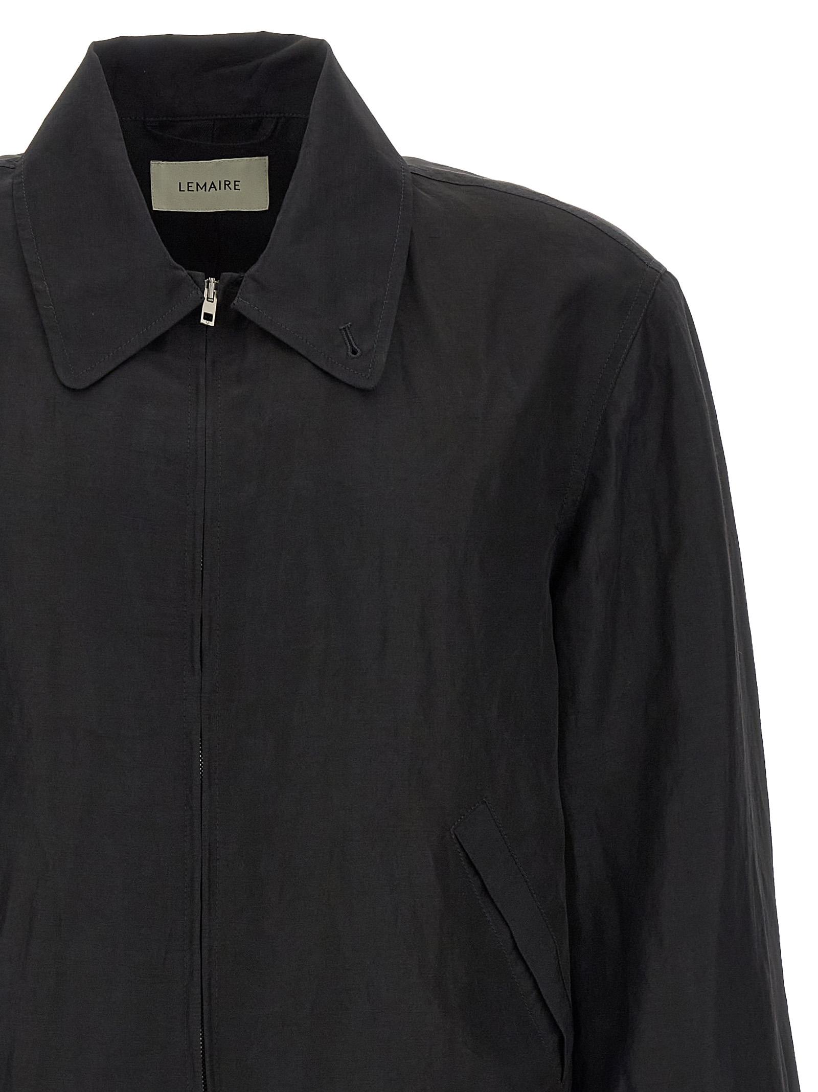 Breathable and durable linen blend jacket, Cotton lining, Shirt collar with button to turn it into a high neck, Front zip closure, Pockets, Long sleeves with cuffs and slightly dropped shoulder, Back elastic on the hem. Size and Fit – True to size fit – LEMAIRE size