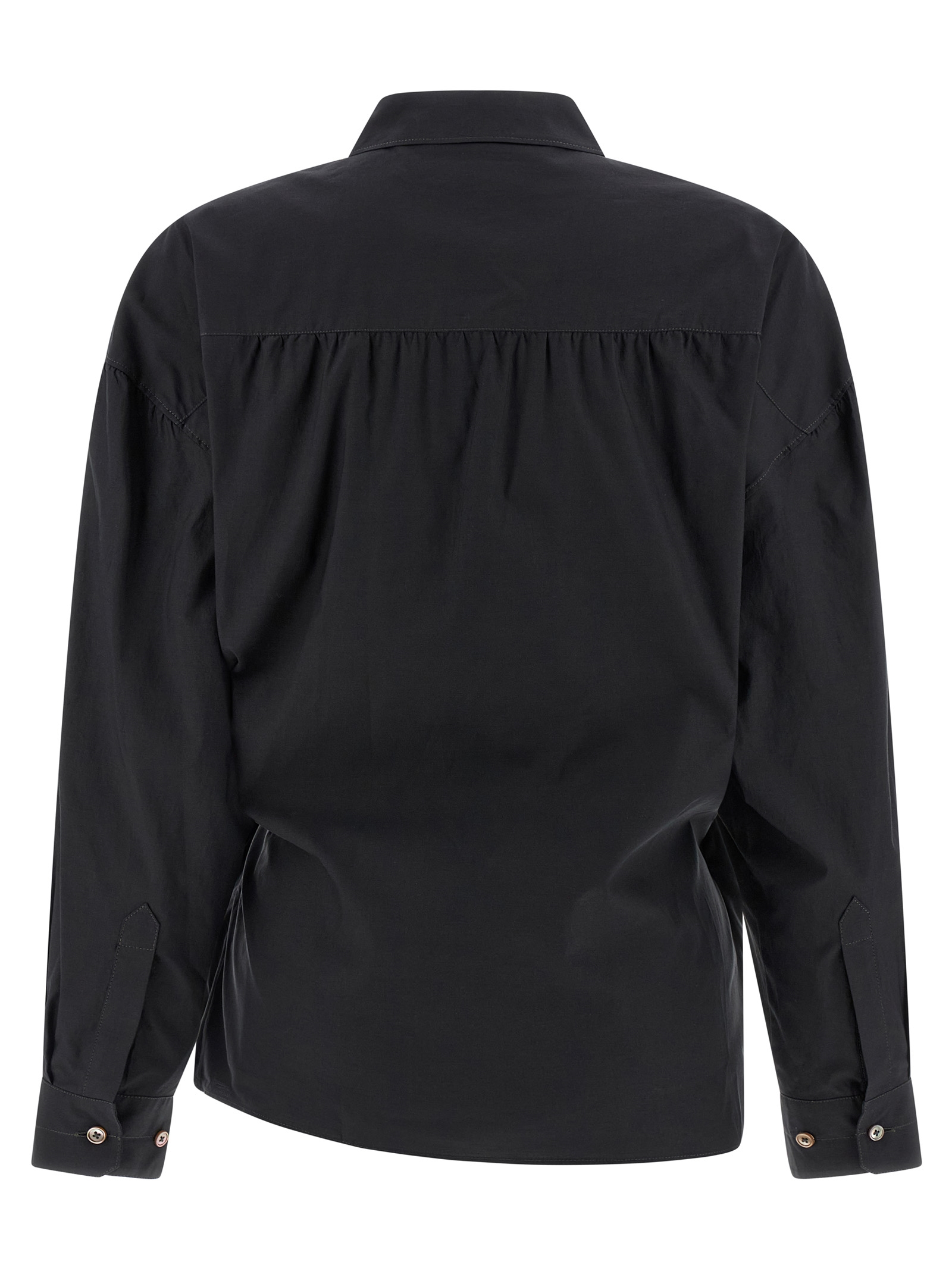 ‘Straight Collar Twisted’ cotton and silk wallet shirt with front asymmetric button closure and long cuffed sleeves.