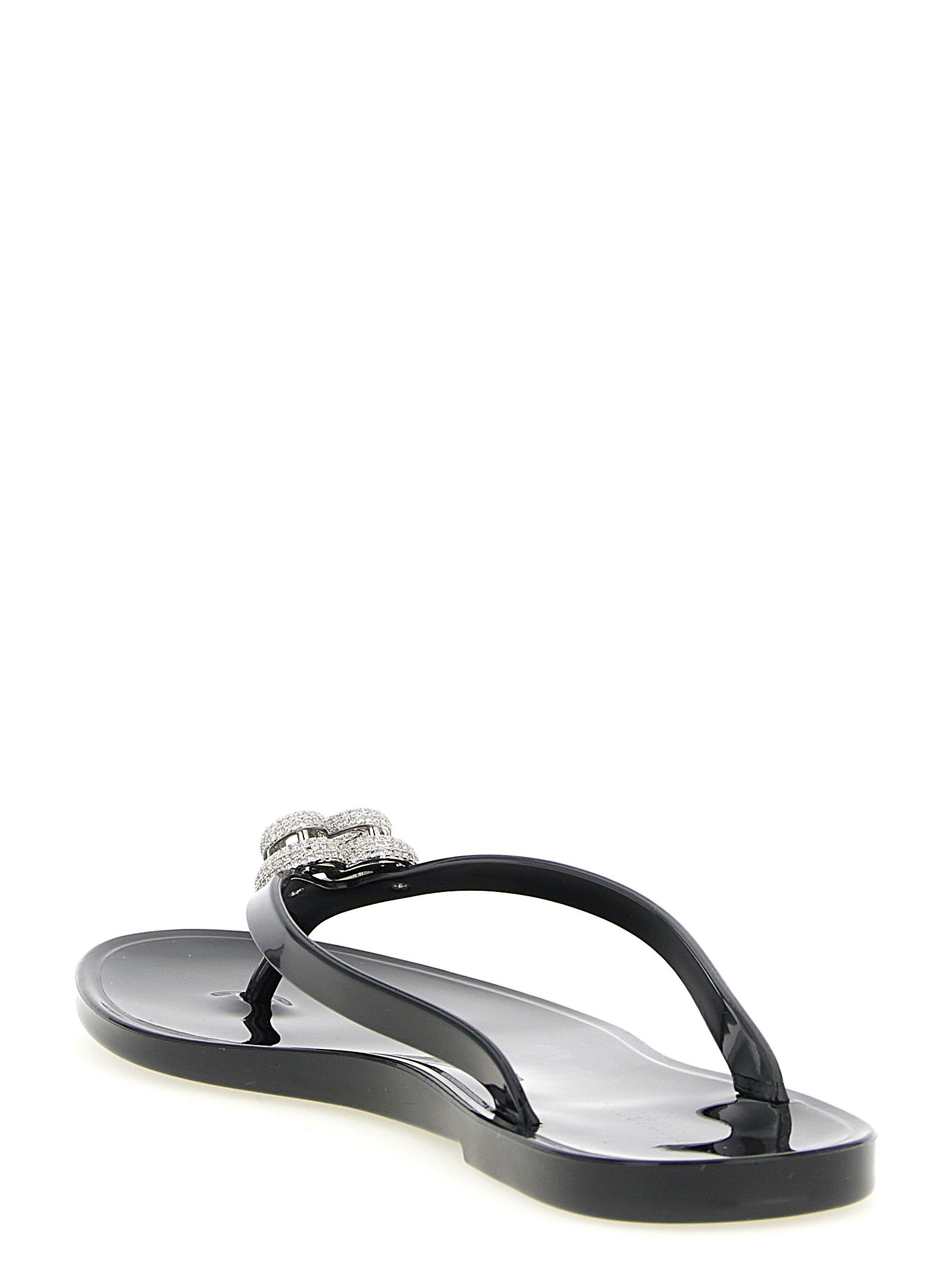 Rubber thong sandals with metal ‘double heart’ detail with crystals applied on the front. Size and Fit – Eu women