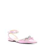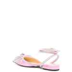 rose pink satin finish crystal embellishment oversize bow detail pointed toe wraparound buckle-fastening ankle strap leather lining branded footbed flat sole Double Bow satin slingback ballet flats