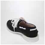 Dsquared2 boat shoes from the Magliano capsule with a black canvas upper, characterized by double laces, logo labels on the side, raw cut edges, and a white rubber sole.