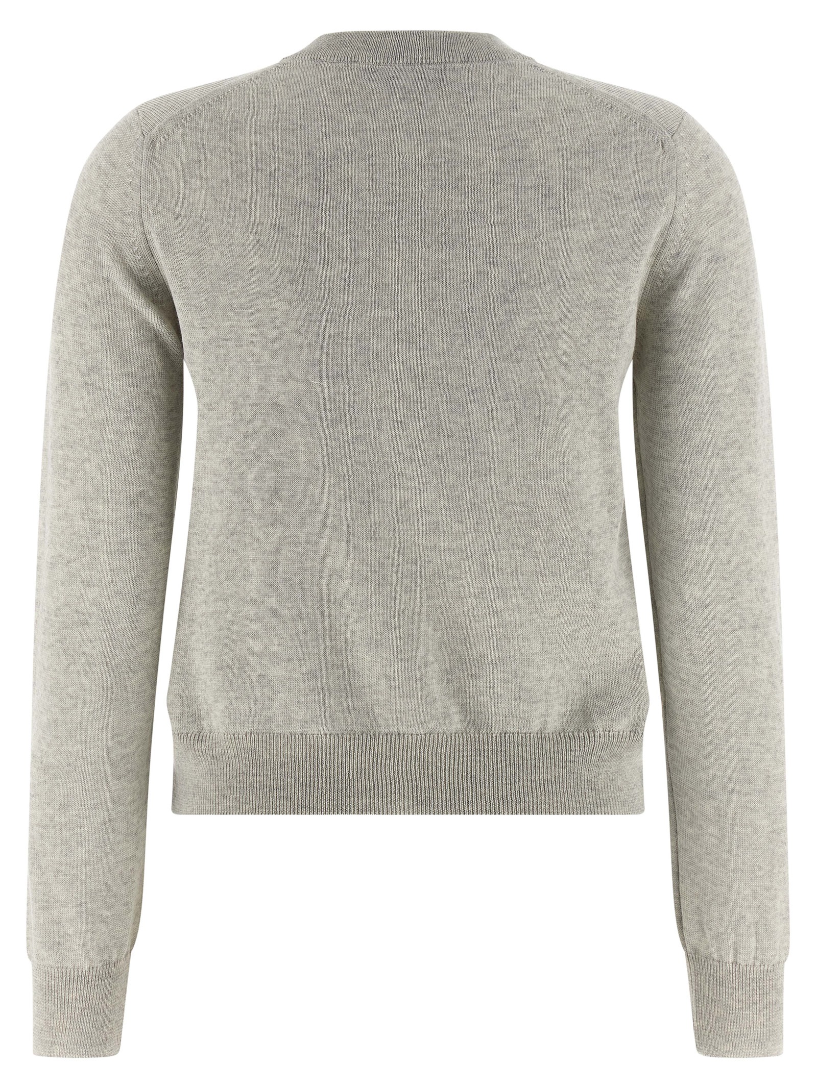 Extrafine mélange wool cardigan with ‘baby fox’ patch and front button closure, Crew neck, Long cuffed sleeves. Size and Fit – true to size fit