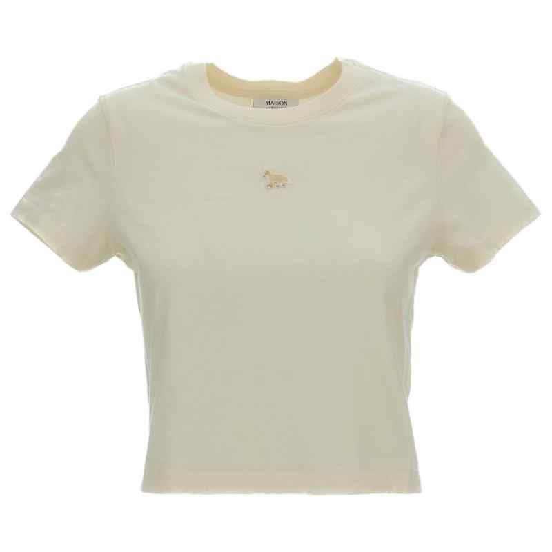 light beige baby fox patch round neck cropped fit Logo cotton t-shirt.