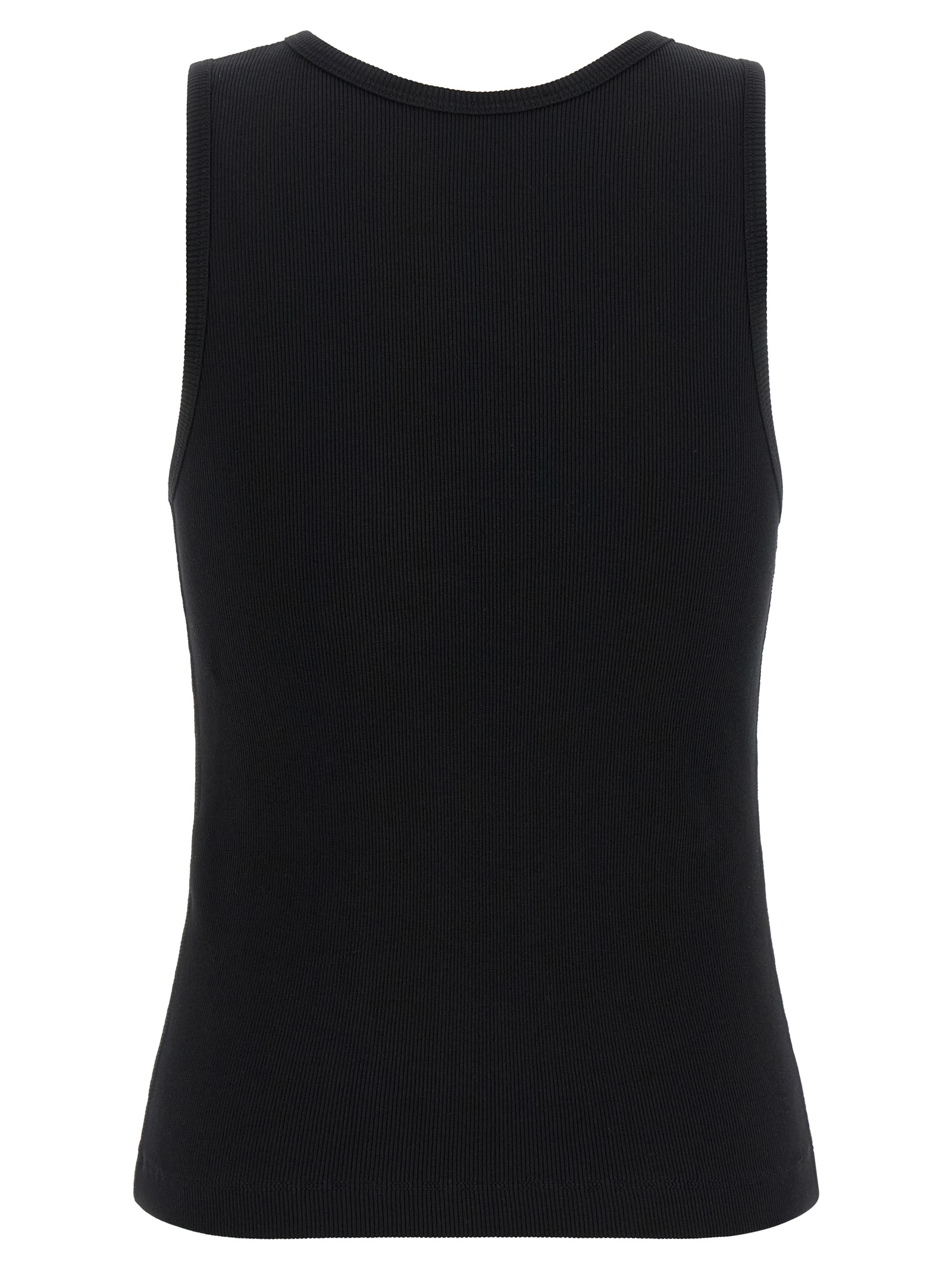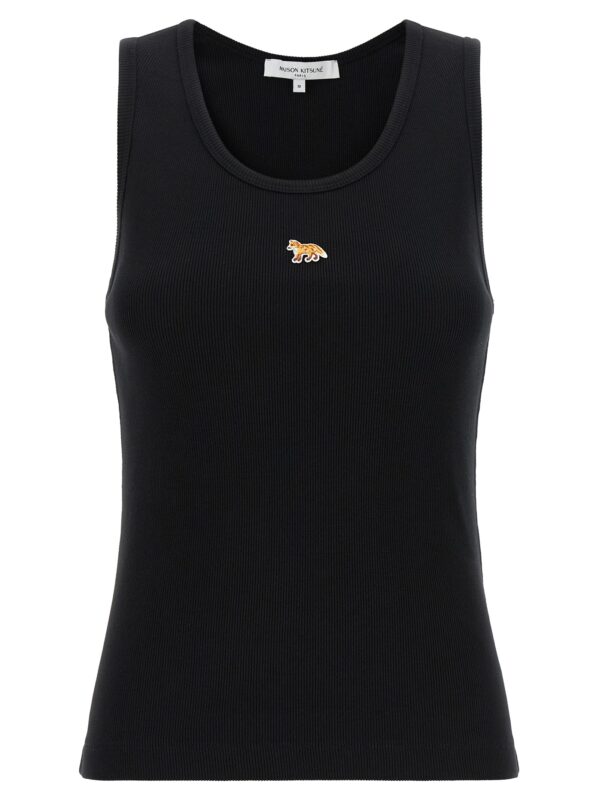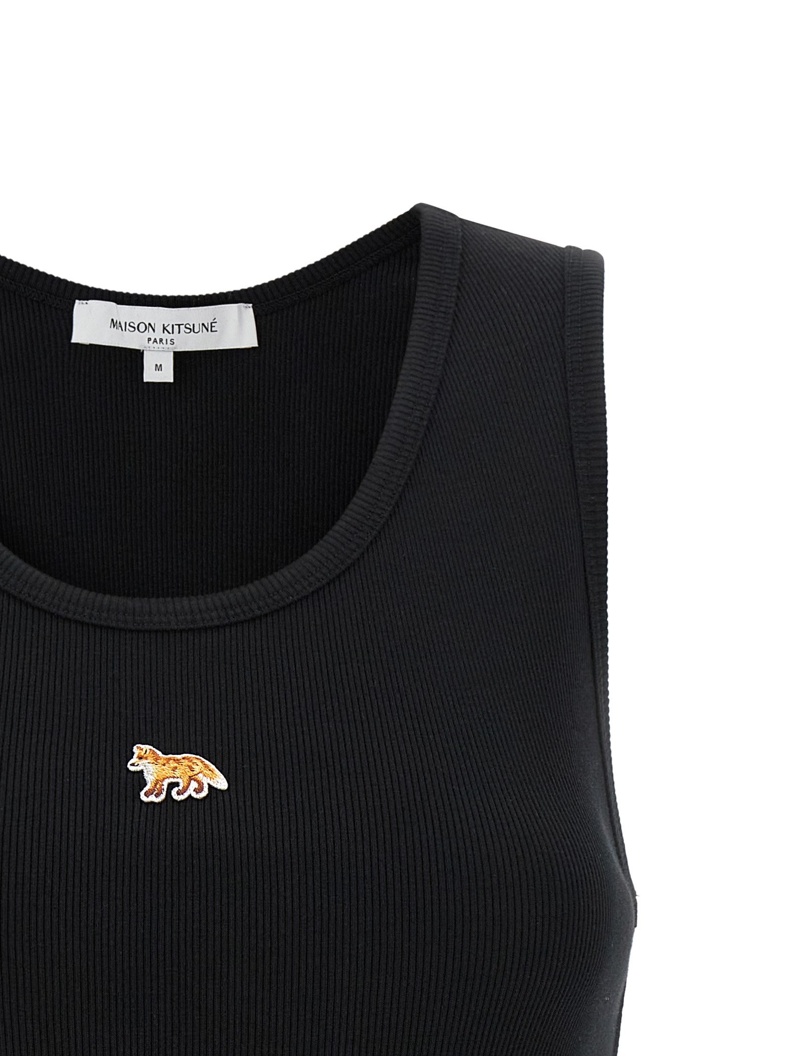 Ribbed stretch cotton tank top, Front ‘baby fox’ patch, Round neckline. Size and Fit – true to size fit