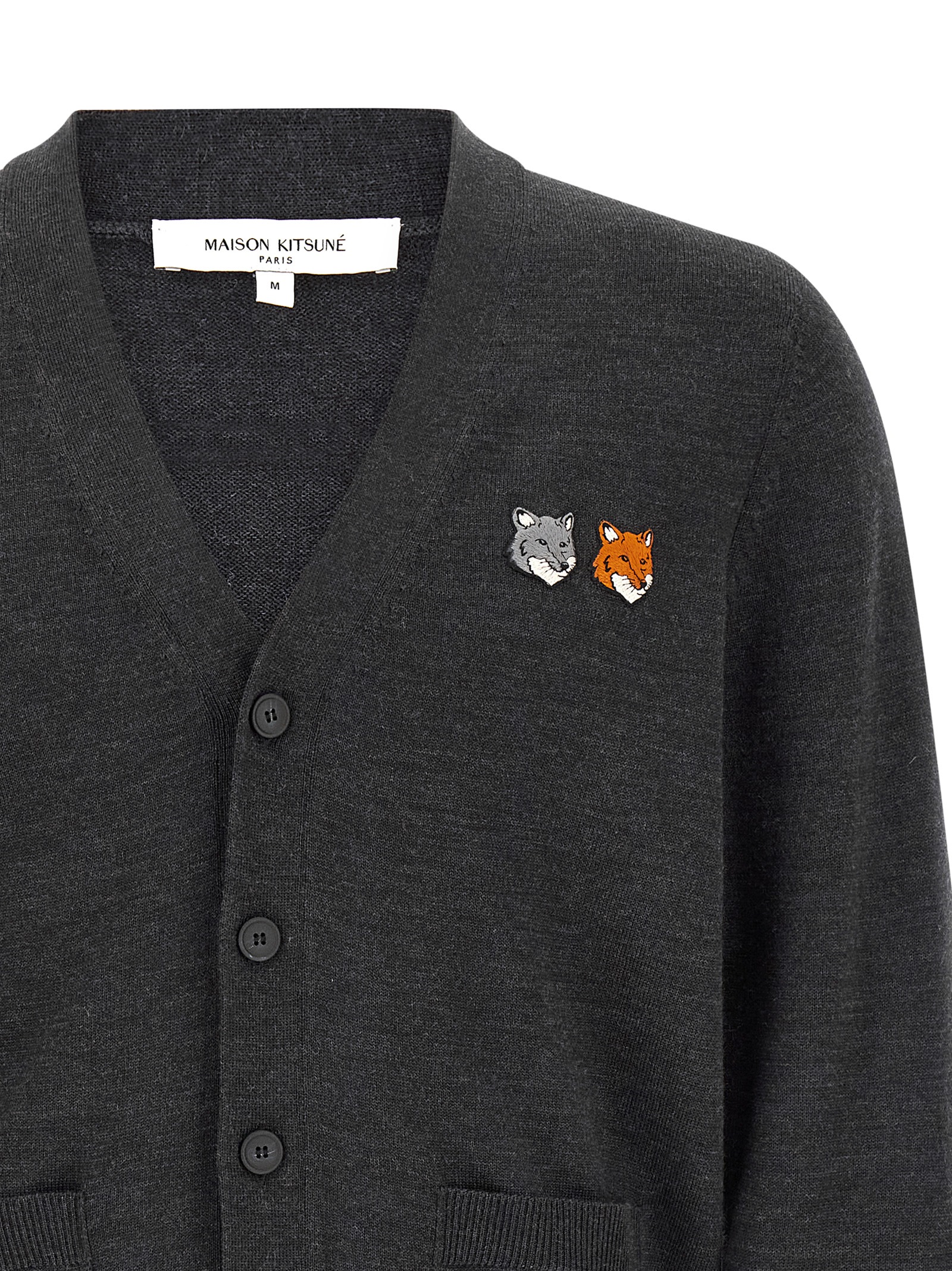 Wool cardigan, Front ‘double fox’ patch, V-neck, Front button closure, Front pockets, Long cuffed sleeves. Size and Fit – True to size fit