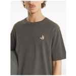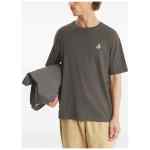 dark grey round neck short sleeves embroidered detail crew neck straight hem Dreaming Fox cotton t-shirt.