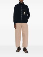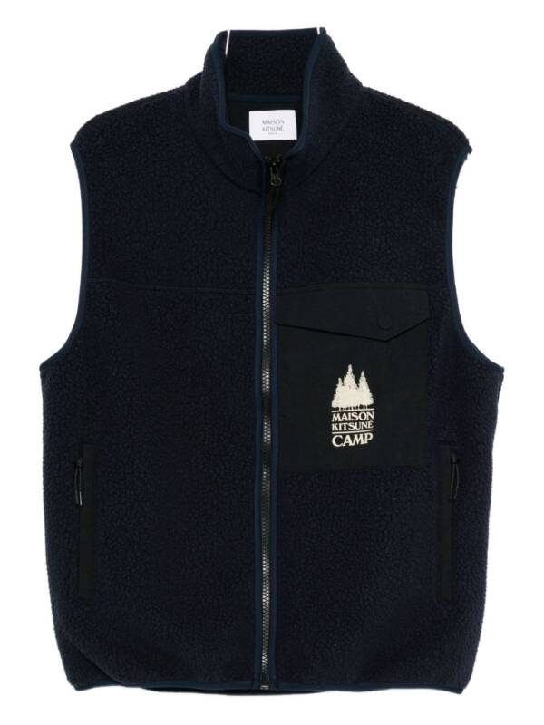 navy blue zip fastening chest pocket sleeveless fleece texture side zip pockets Fleece zipped vest.
