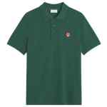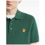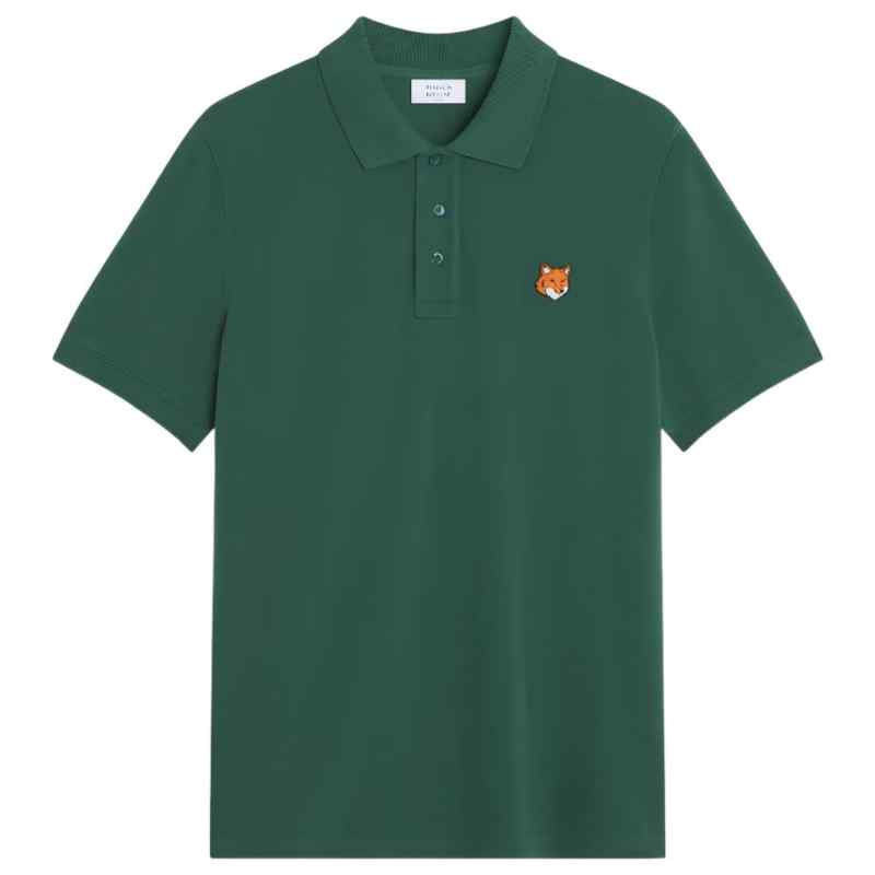 green fox-head patch polo collar short sleeves front button placket Fox Head cotton polo shirt.