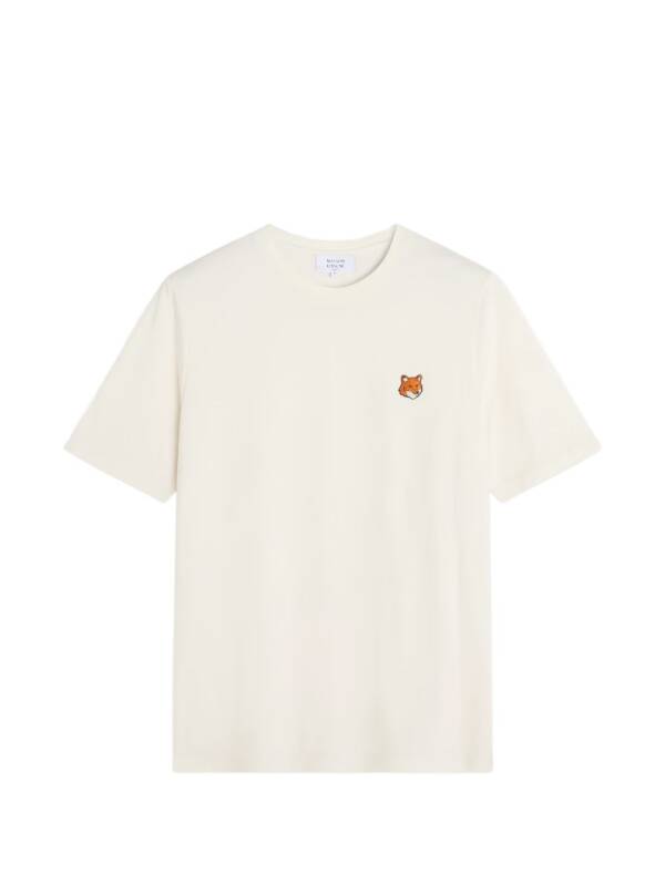 beige fox motif round neck short sleeves Fox Head cotton t-shirt.