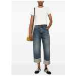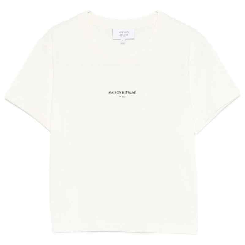 beige embroidered logo crew neck short sleeves Logo cotton t-shirt.
