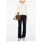 beige embroidered detail round neck front button fastening long sleeves ribbed trim Baby Fox wool cardigan.