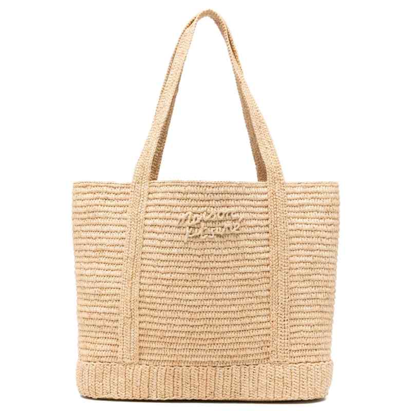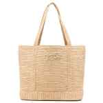 beige raffia logo lettering two top handles open top This piece comes complete with a protective dust bag. Rafia tote bag. Size and Fit –  .