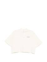 beige button fastening polo collar short sleeves cropped style Oversized cotton polo shirt.