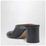 Maison Margiela black leather mule pumps, featuring a cylindrical heel, round toe with Tabi split and leather sole.
