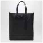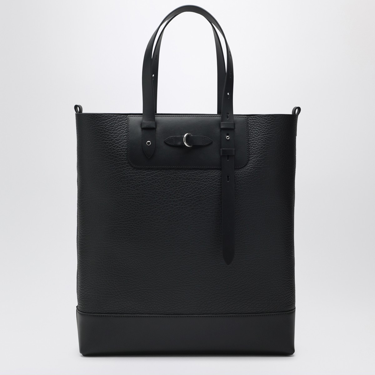 Maison Margiela black leather shopping bag, featuring adjustable-length top handles, D-ring detail and Four Stitches logo on the front.