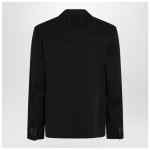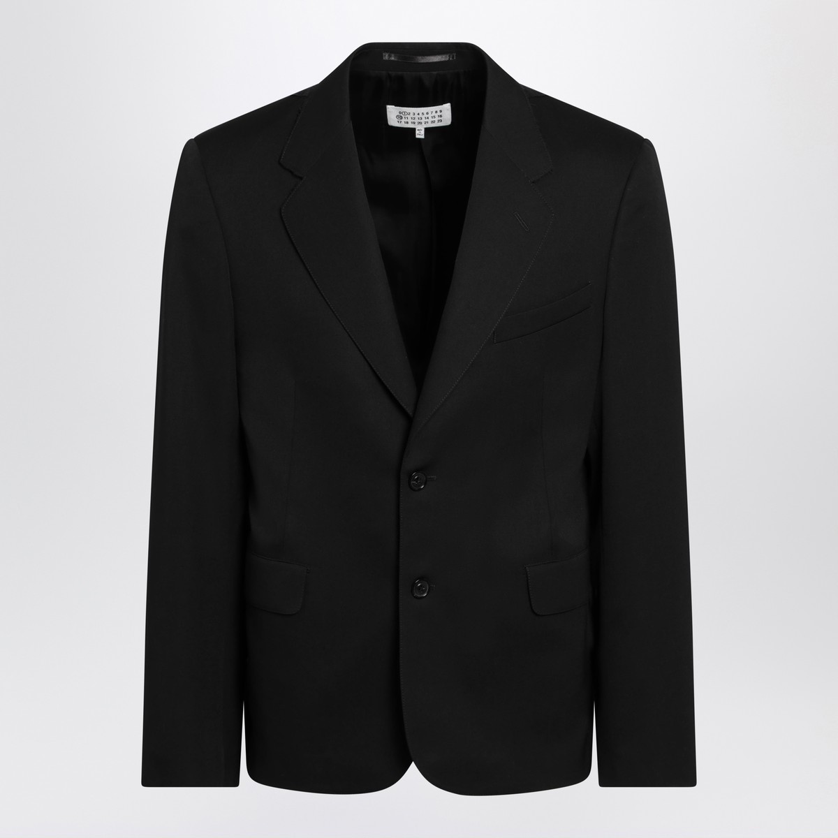 Maison Margiela black wool single-breasted jacket, featuring front button closure, classic lapels, long sleeves, one chest welt pocket, two front flap pockets and Four Stitches logo on the back.